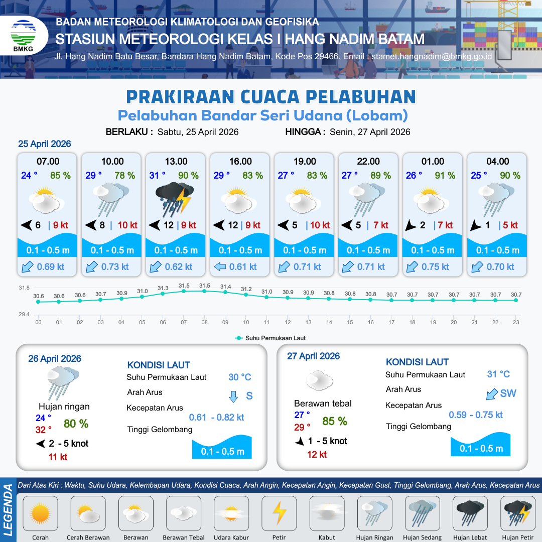 Prakiraan Cuaca Pelabuhan Pelabuhan Bandar Seri Udana (Lobam)
