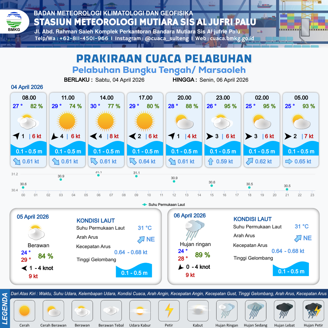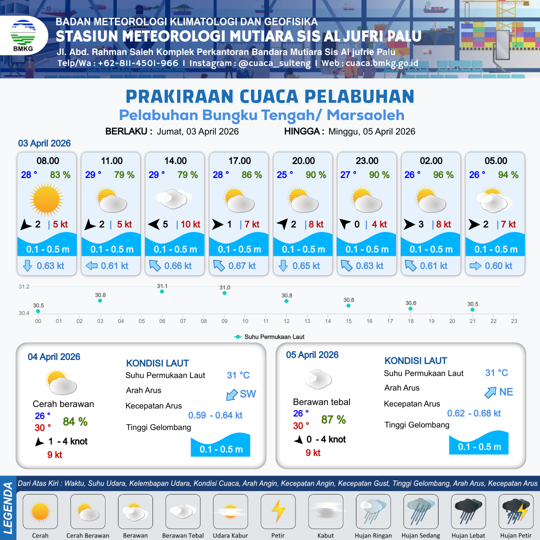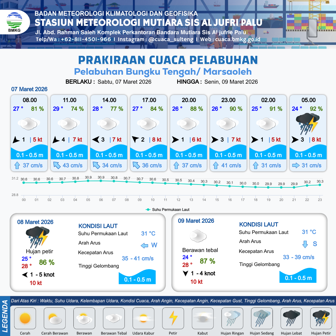Prakiraan Cuaca Pelabuhan Pelabuhan Bungku Tengah/ Marsaoleh