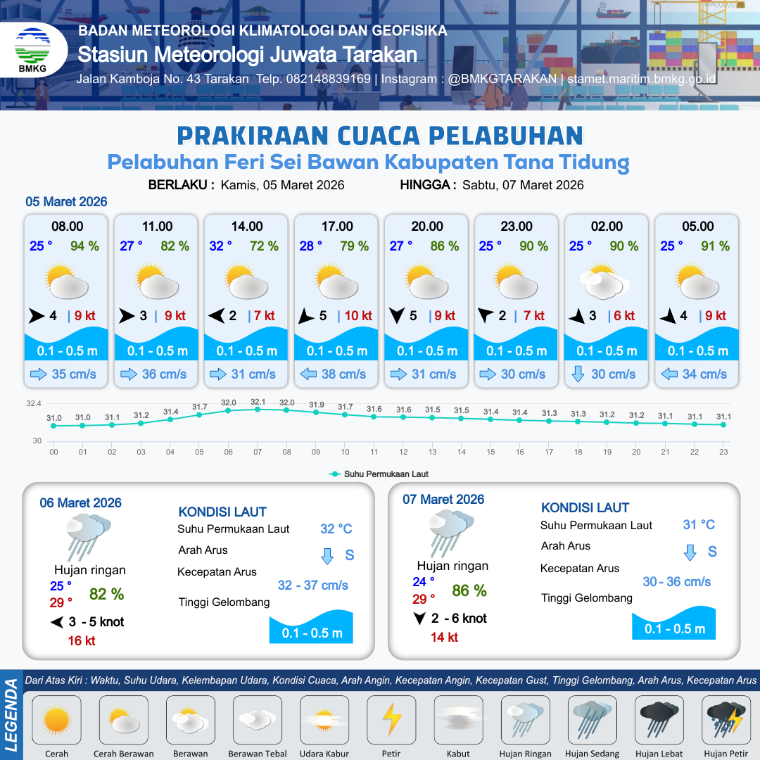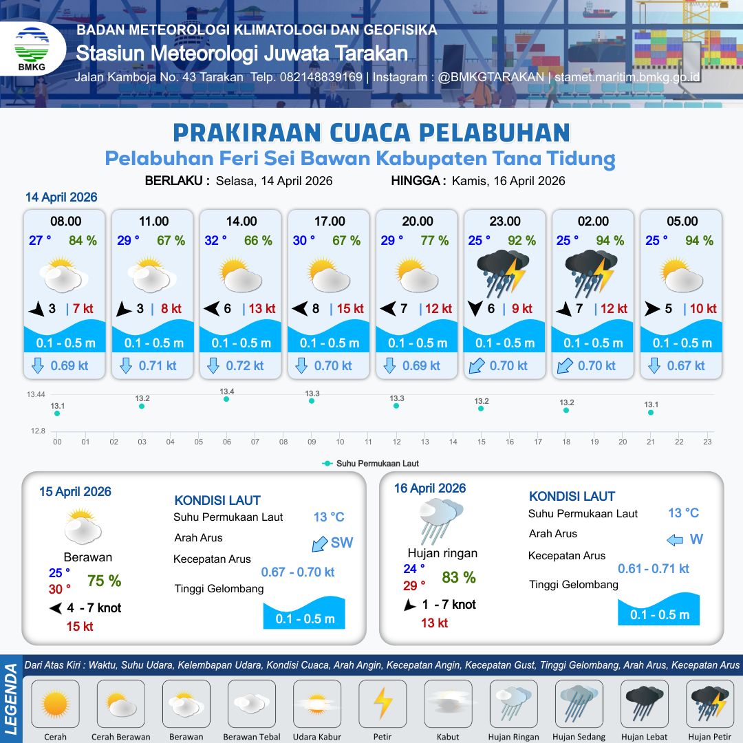 Prakiraan Cuaca Pelabuhan Pelabuhan Feri Sei Bawan Kabupaten Tana Tidung