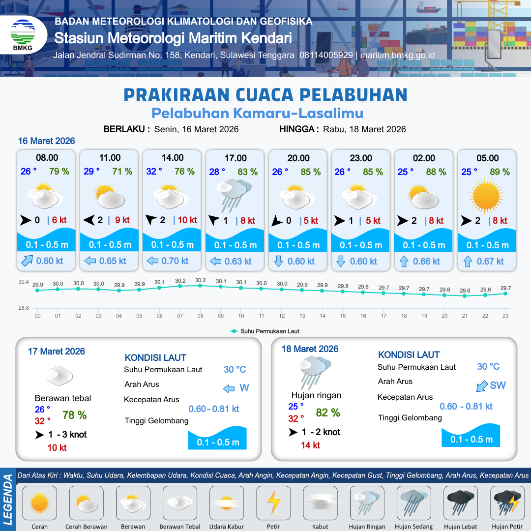 Prakiraan Cuaca Pelabuhan Pelabuhan Kamaru-Lasalimu