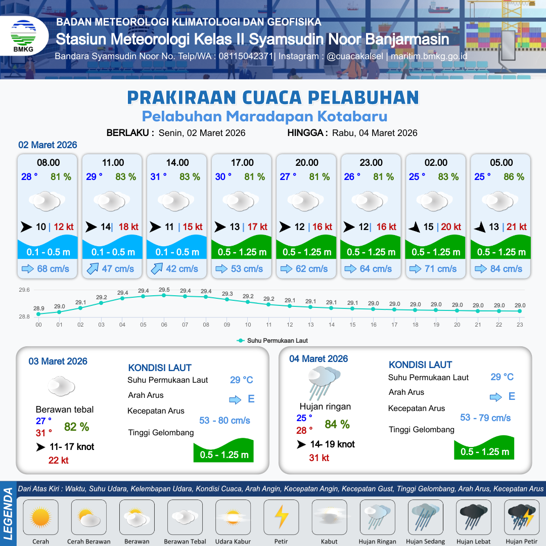 Prakiraan Cuaca Pelabuhan Pelabuhan Maradapan Kotabaru