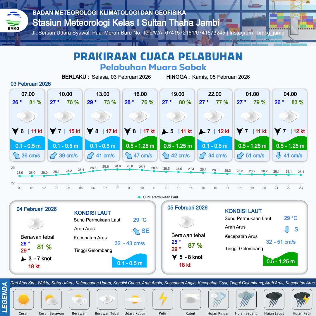Prakiraan Cuaca Pelabuhan Pelabuhan Muara Sabak