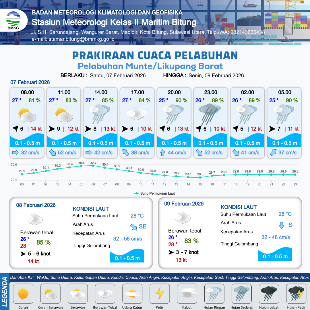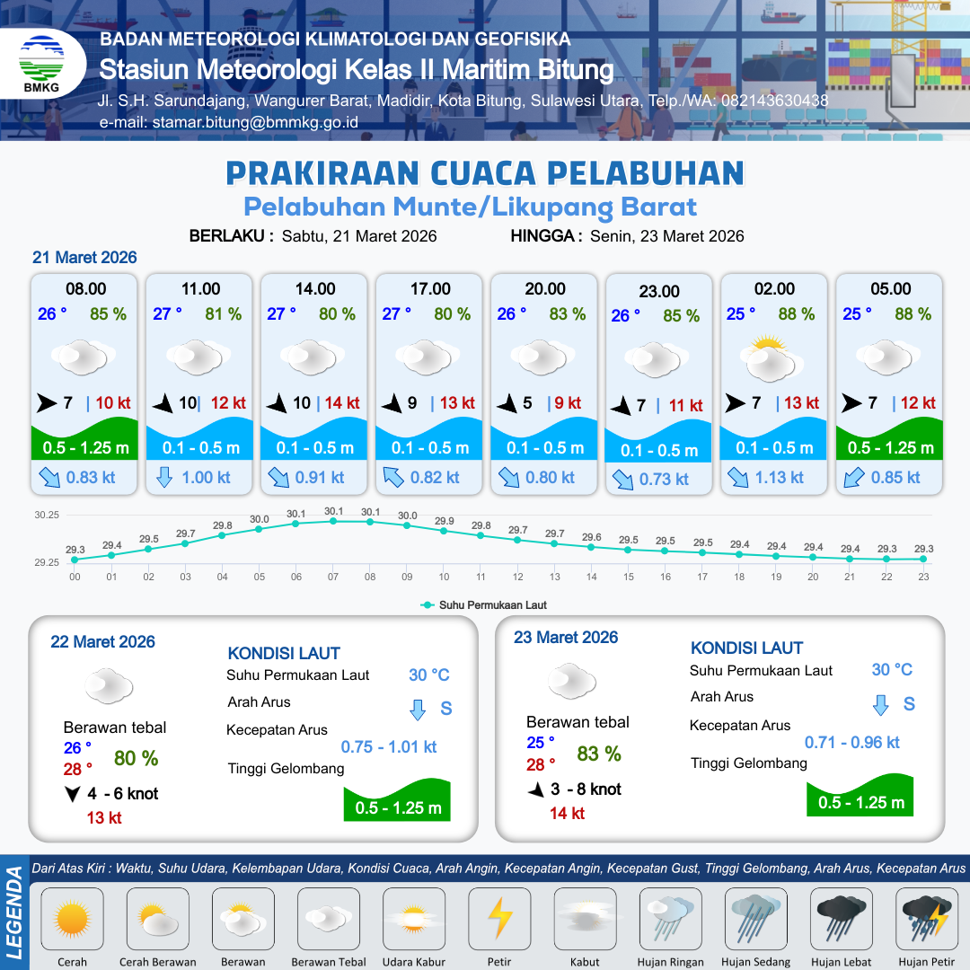 Prakiraan Cuaca Pelabuhan Pelabuhan Munte/Likupang Barat