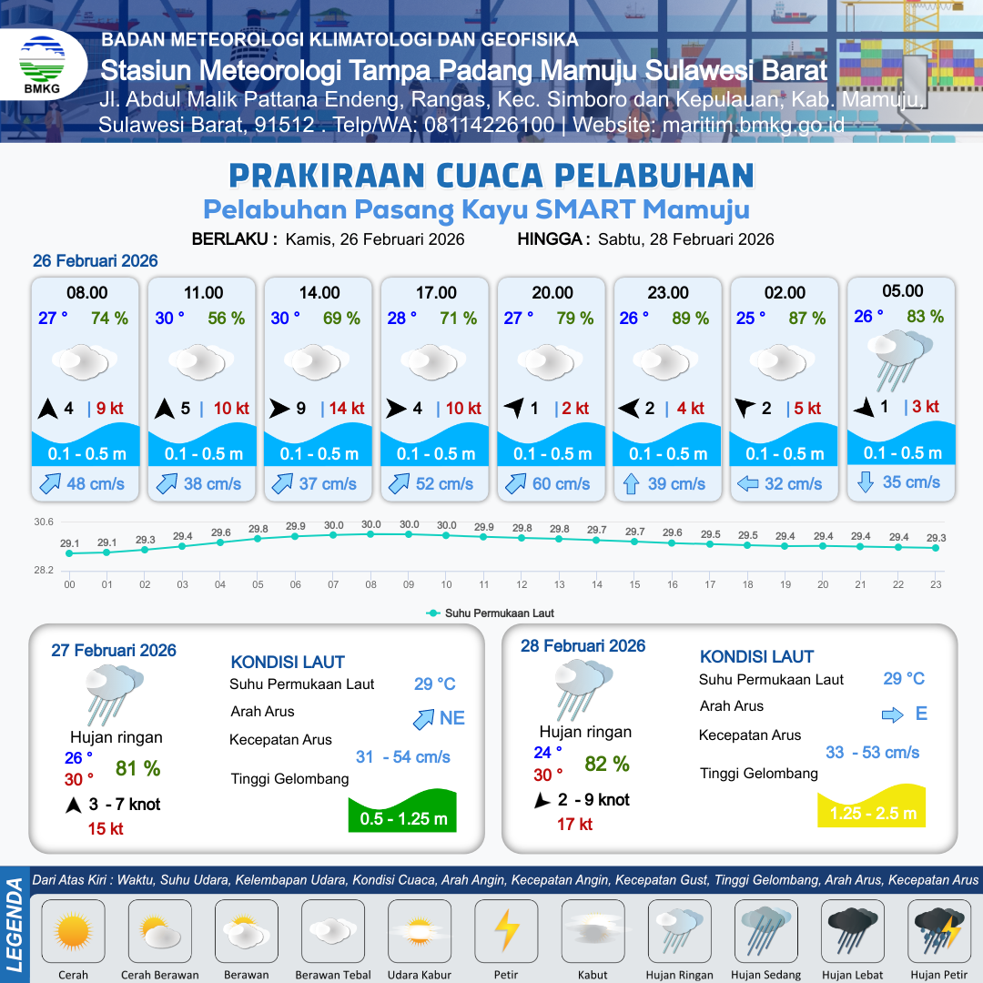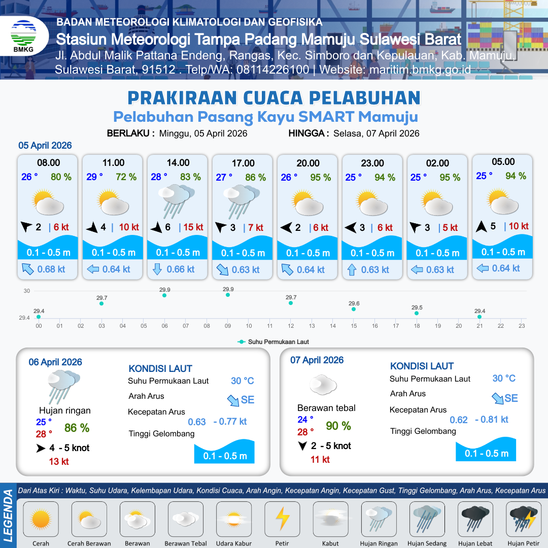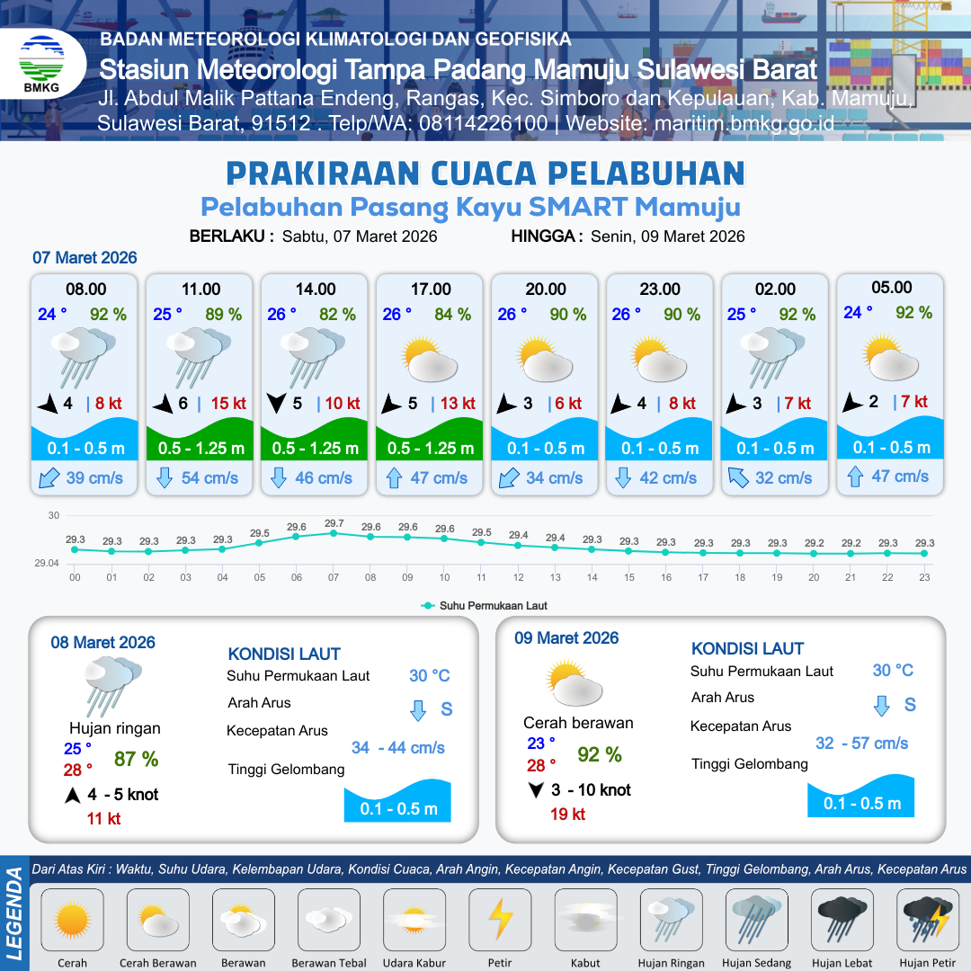 Prakiraan Cuaca Pelabuhan Pelabuhan Pasang Kayu SMART Mamuju
