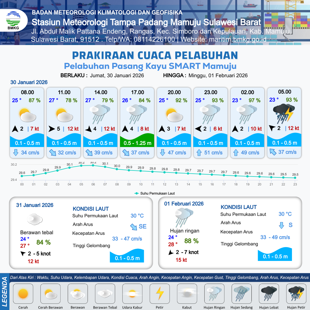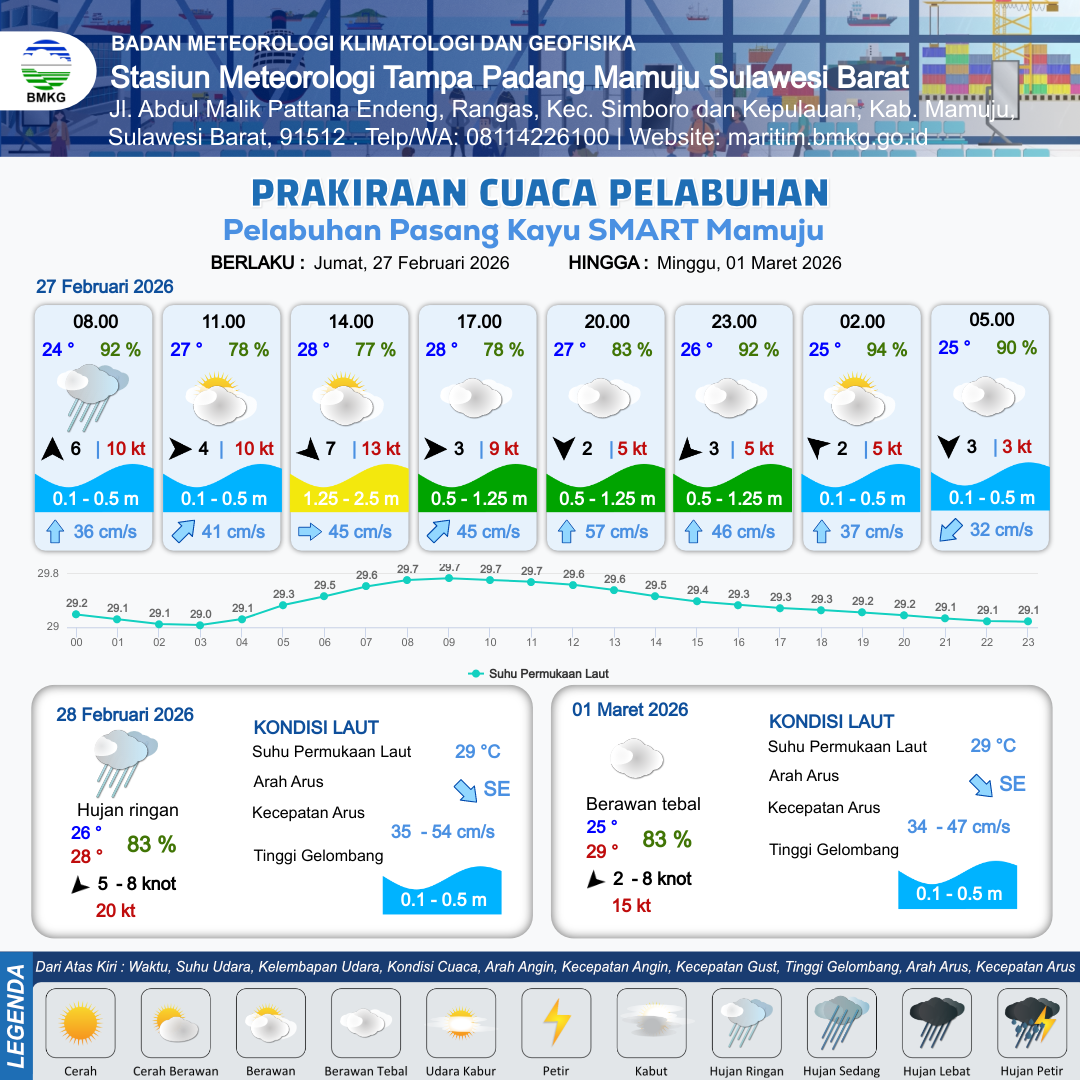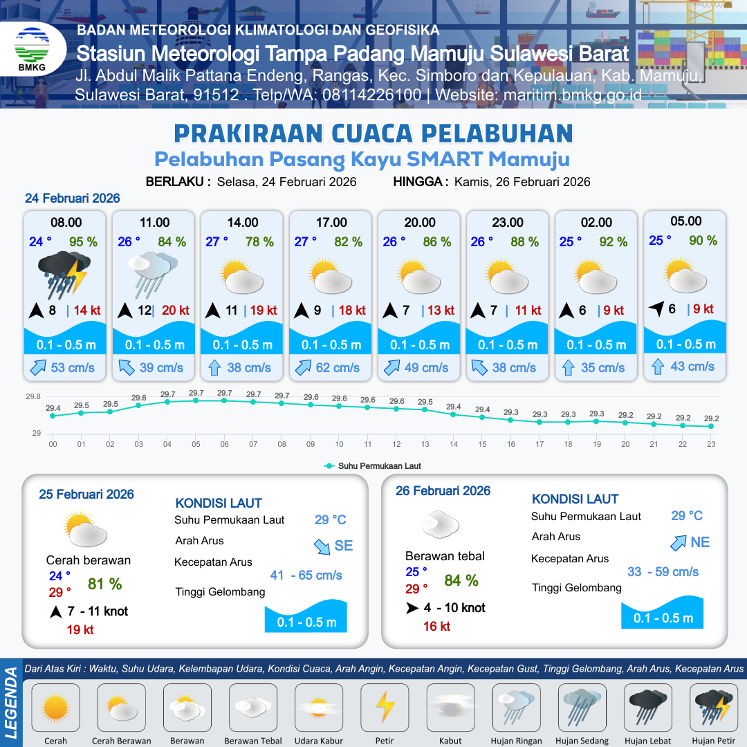 Prakiraan Cuaca Pelabuhan Pelabuhan Pasang Kayu SMART Mamuju
