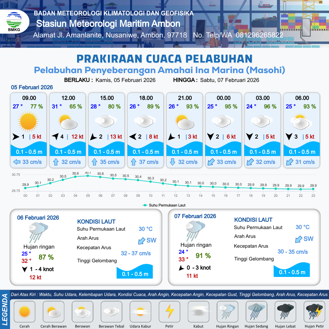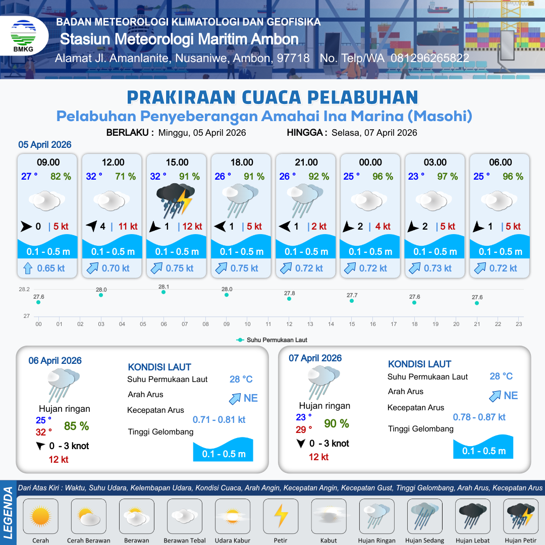Prakiraan Cuaca Pelabuhan Pelabuhan Penyeberangan Amahai Ina Marina (Masohi)