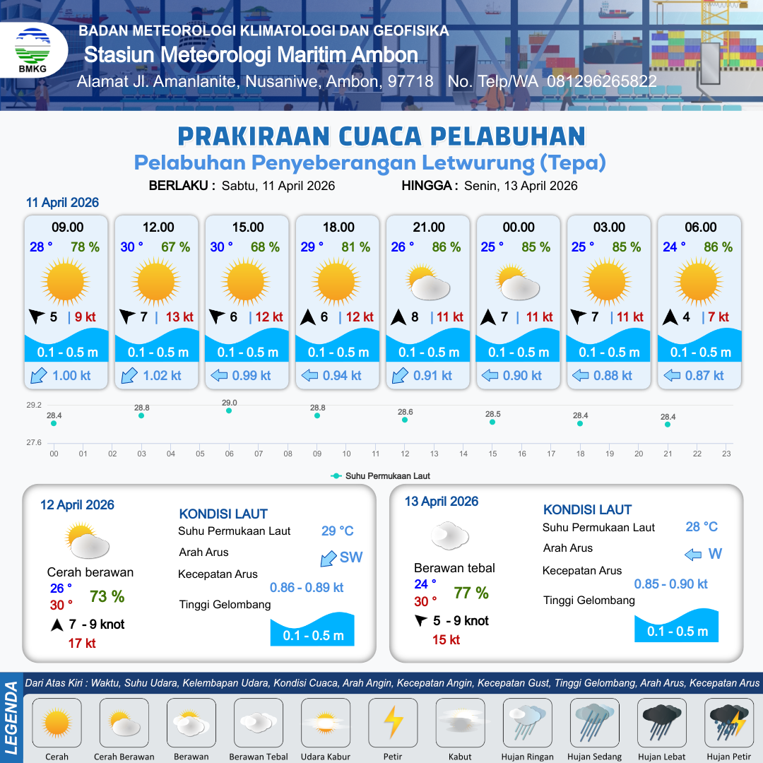 Prakiraan Cuaca Pelabuhan Pelabuhan Penyeberangan Letwurung (Tepa)