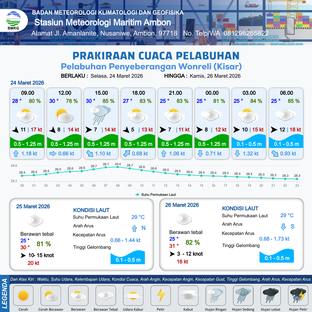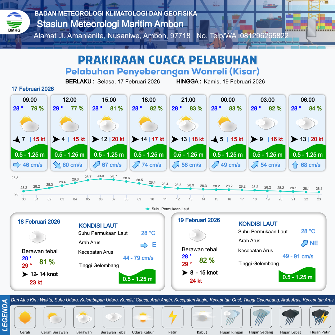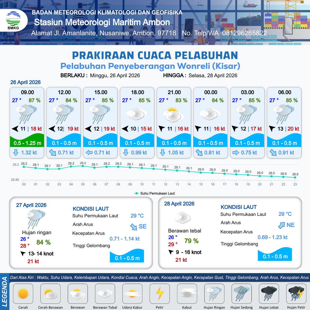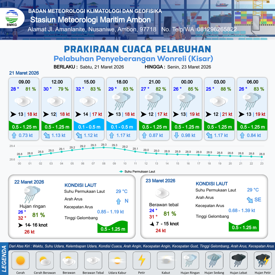 Prakiraan Cuaca Pelabuhan Pelabuhan Penyeberangan Wonreli (Kisar)