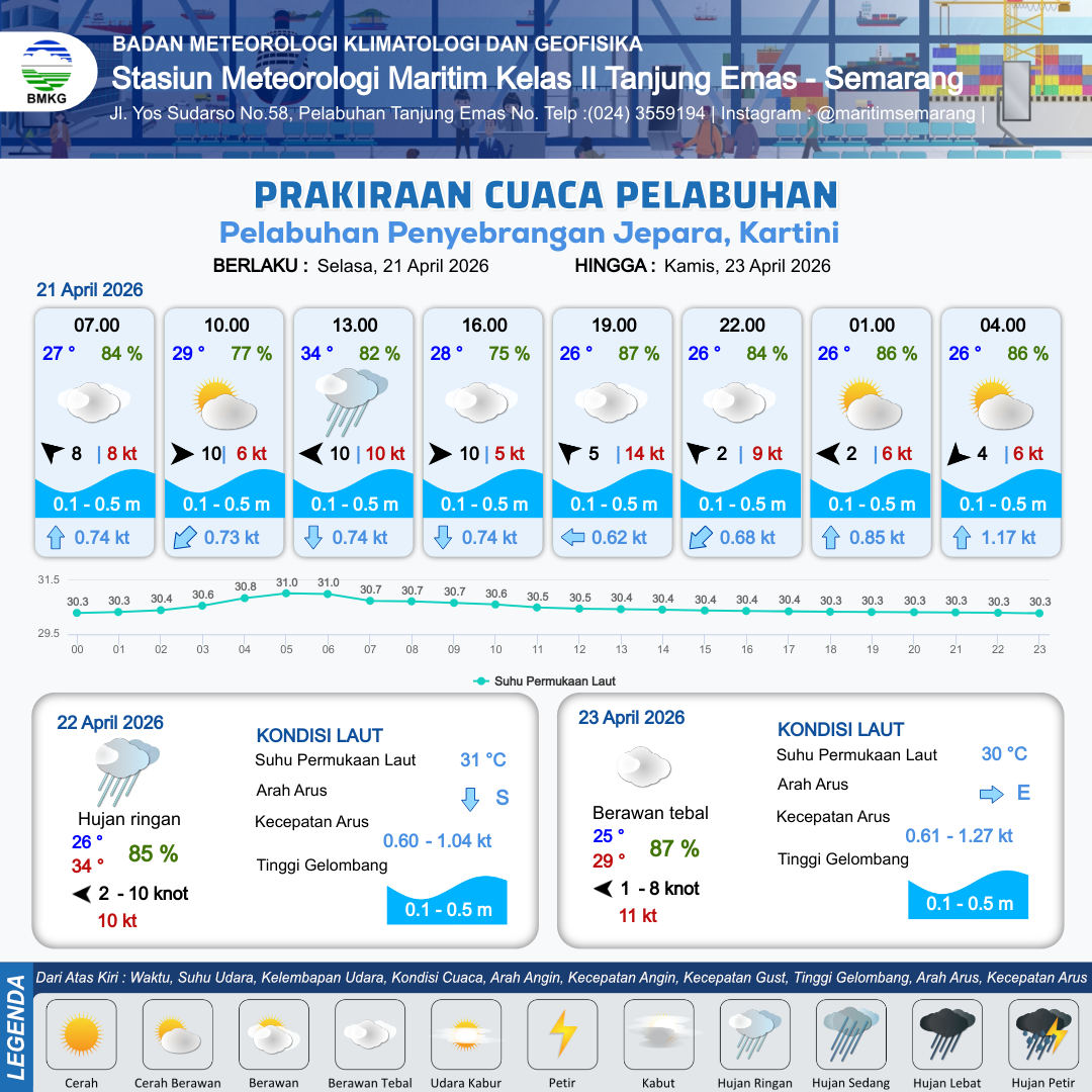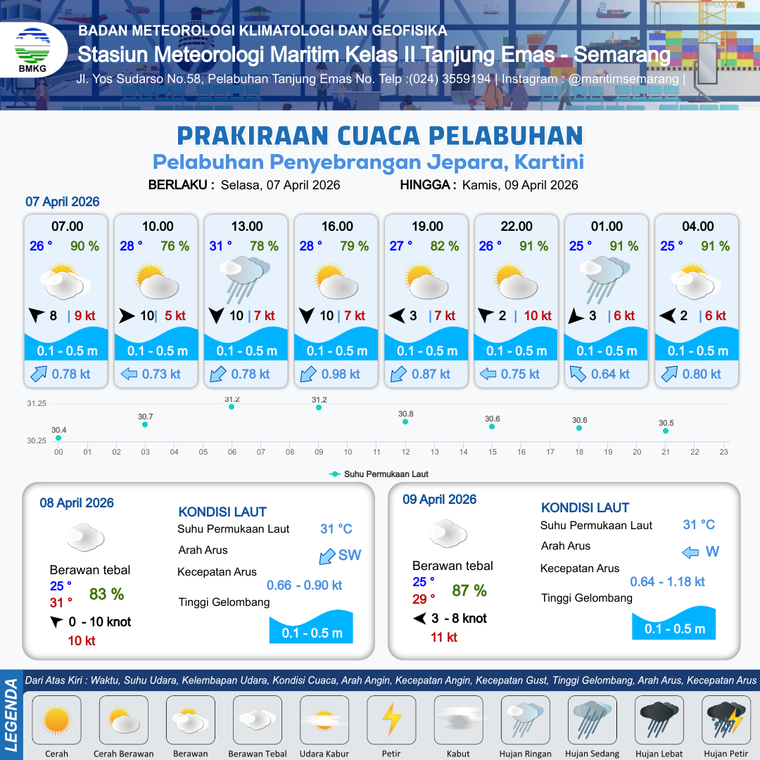 Prakiraan Cuaca Pelabuhan Pelabuhan Penyebrangan Jepara, Kartini