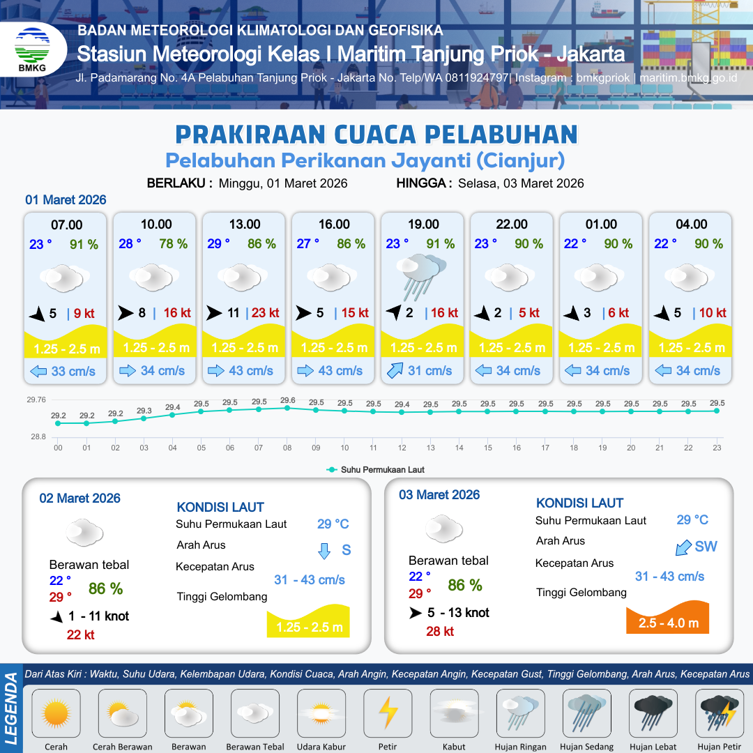 Prakiraan Cuaca Pelabuhan Pelabuhan Perikanan Jayanti (Cianjur)