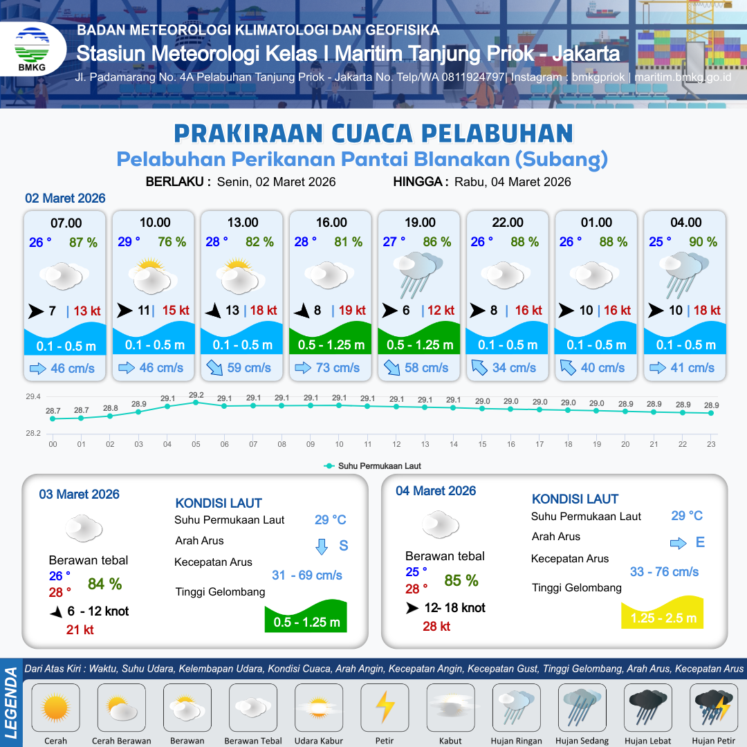 Prakiraan Cuaca Pelabuhan Pelabuhan Perikanan Pantai Blanakan (Subang)