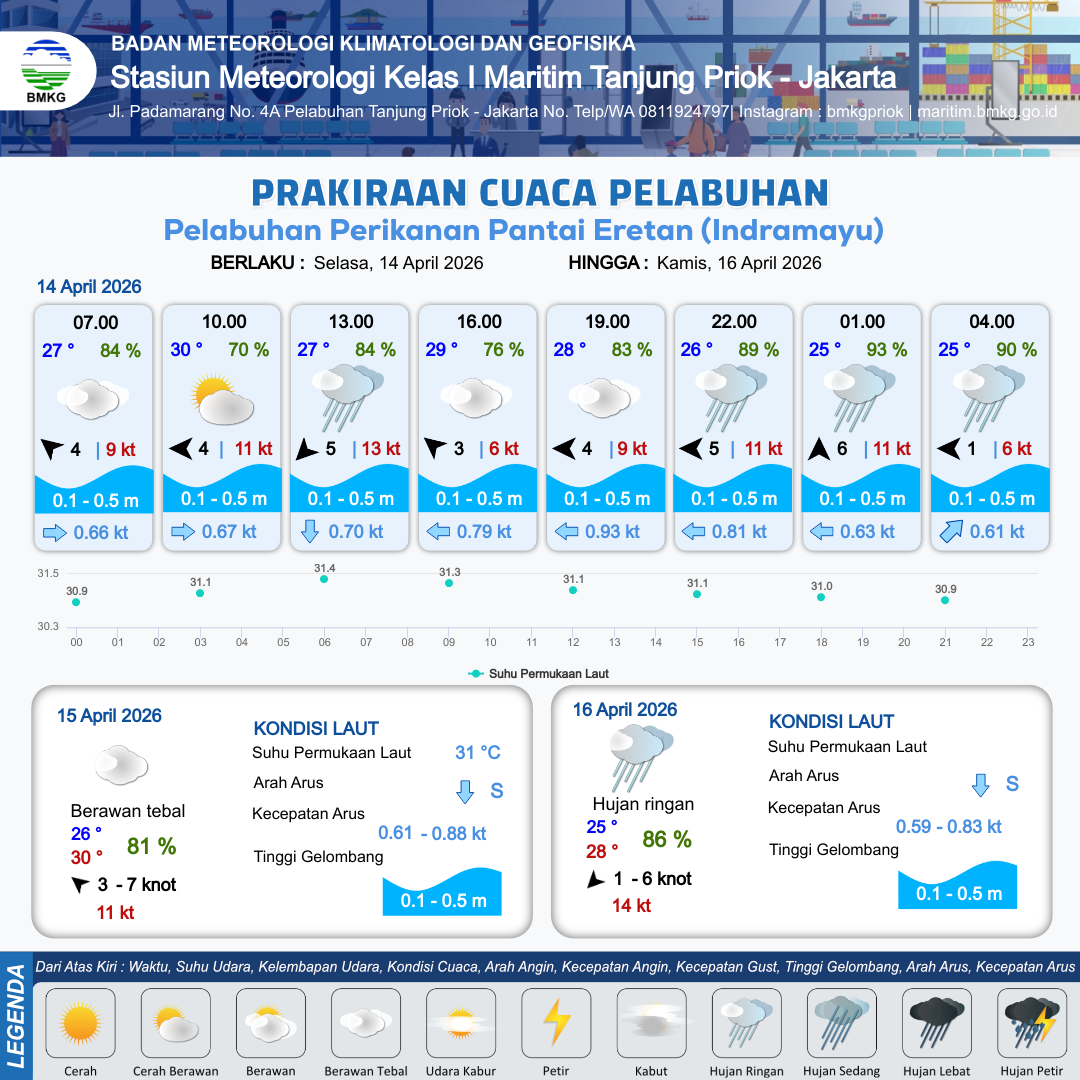 Prakiraan Cuaca Pelabuhan Pelabuhan Perikanan Pantai Eretan (Indramayu)