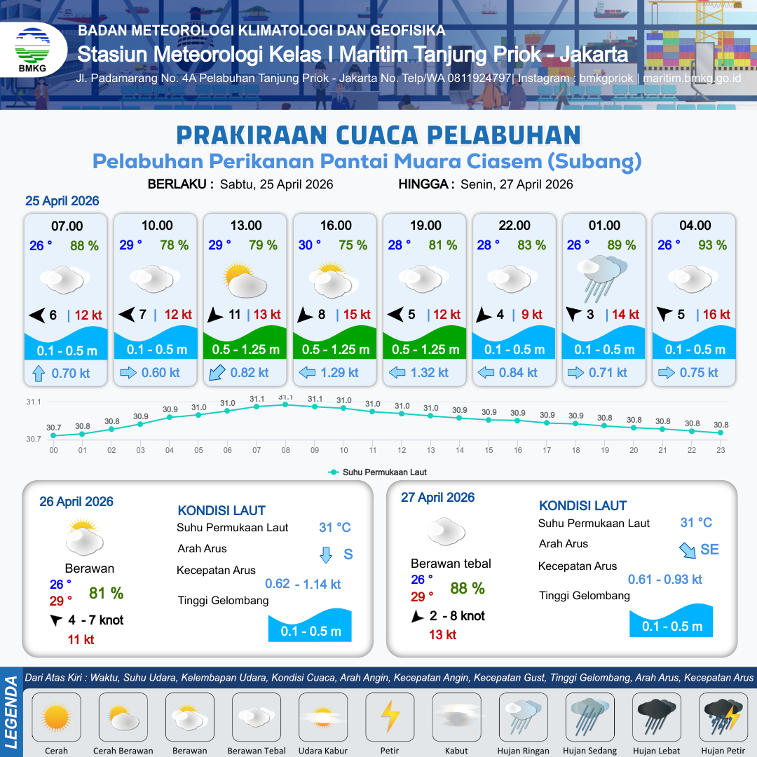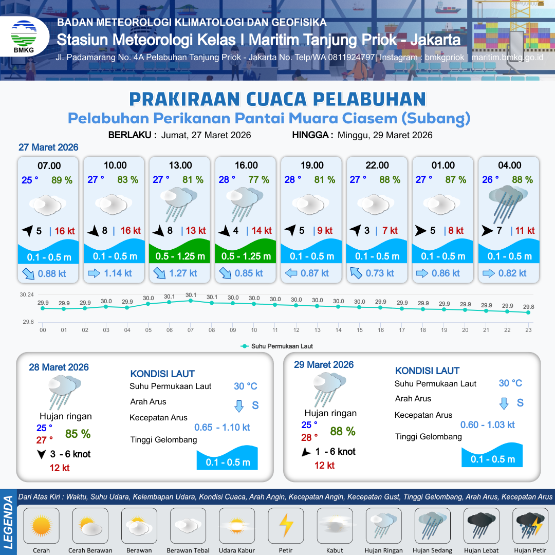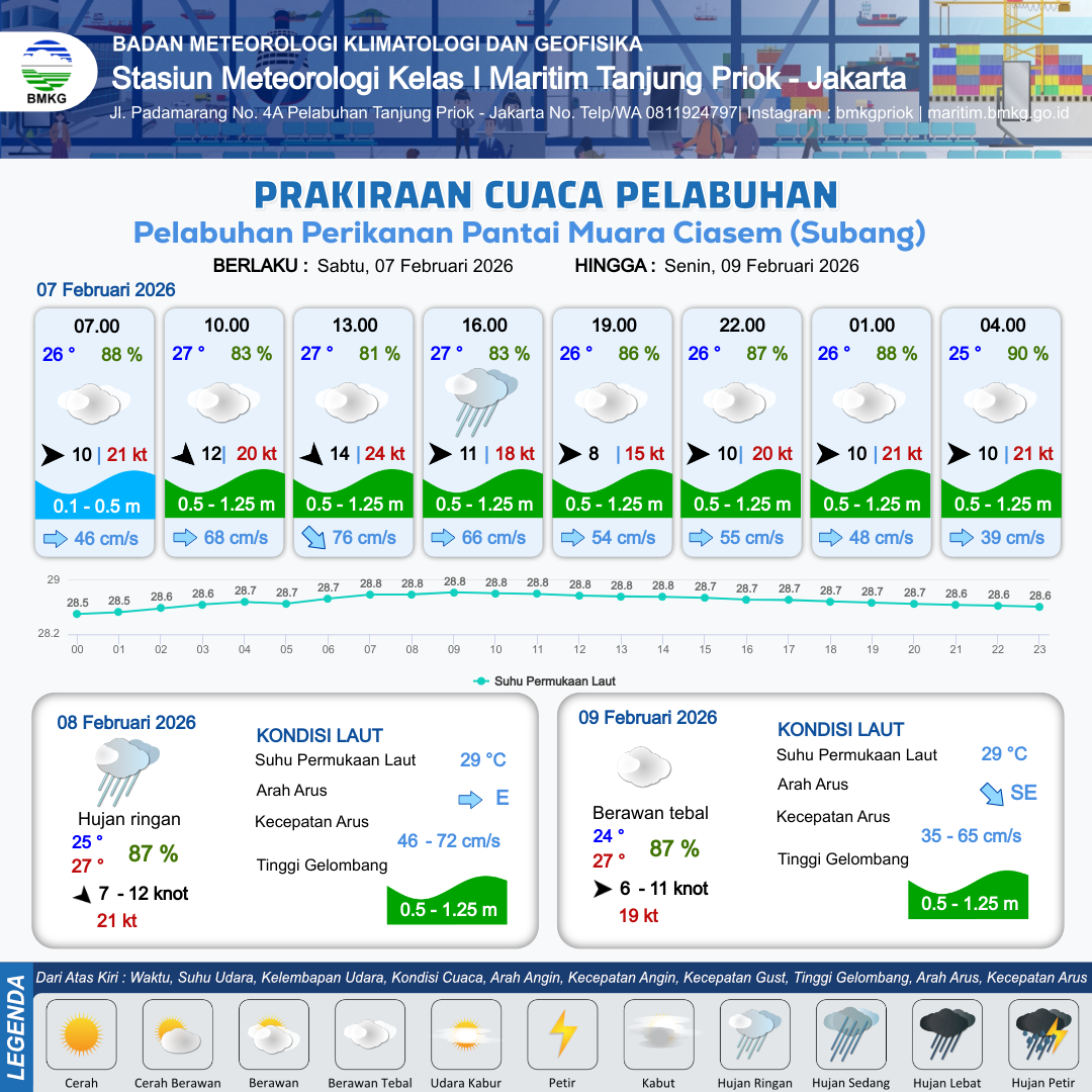 Prakiraan Cuaca Pelabuhan Pelabuhan Perikanan Pantai Muara Ciasem (Subang)