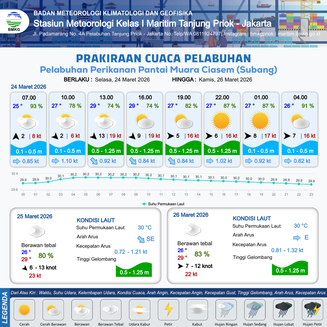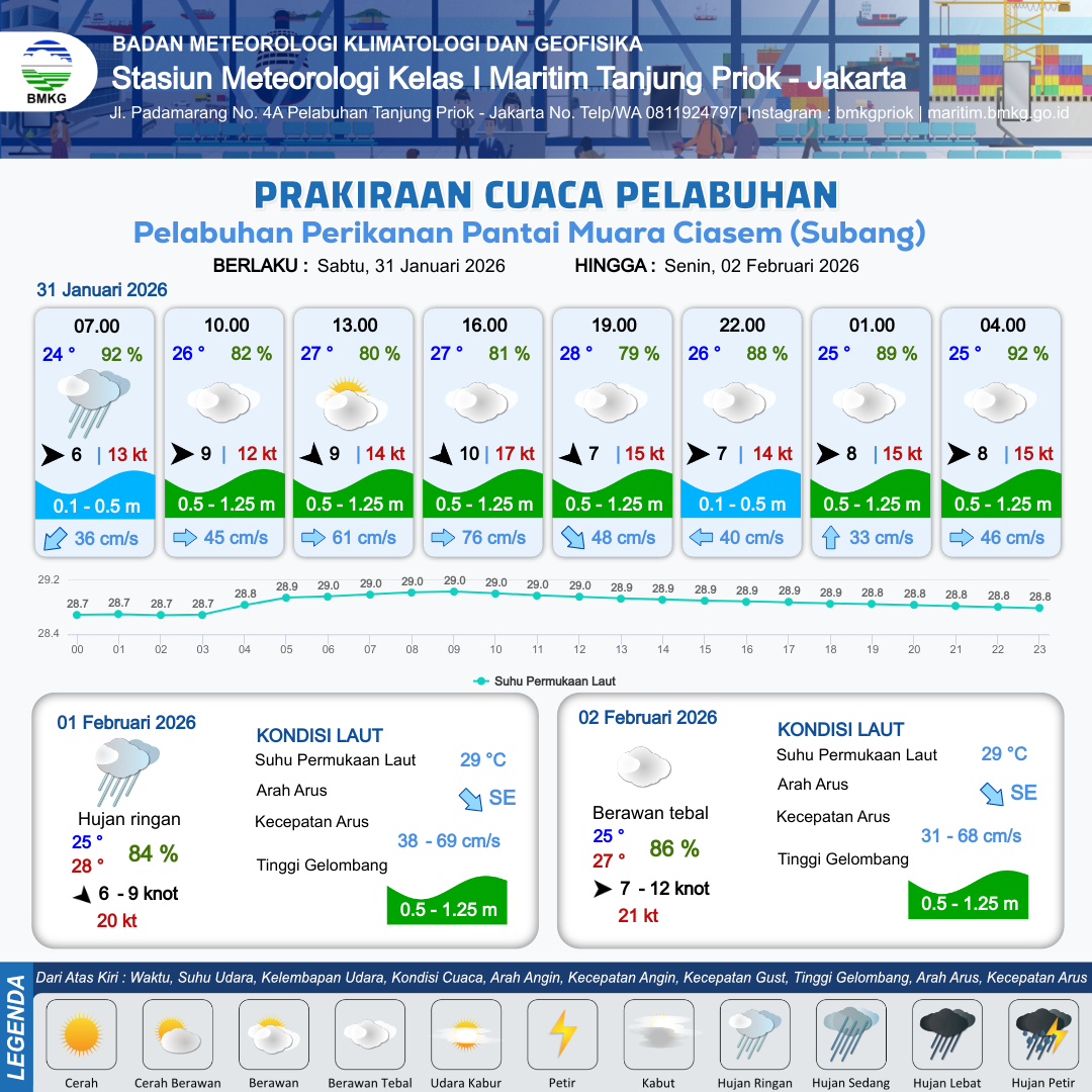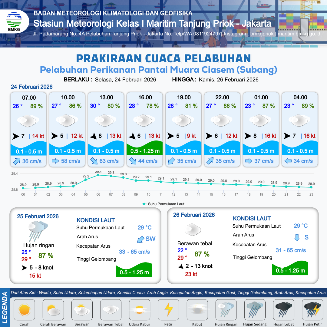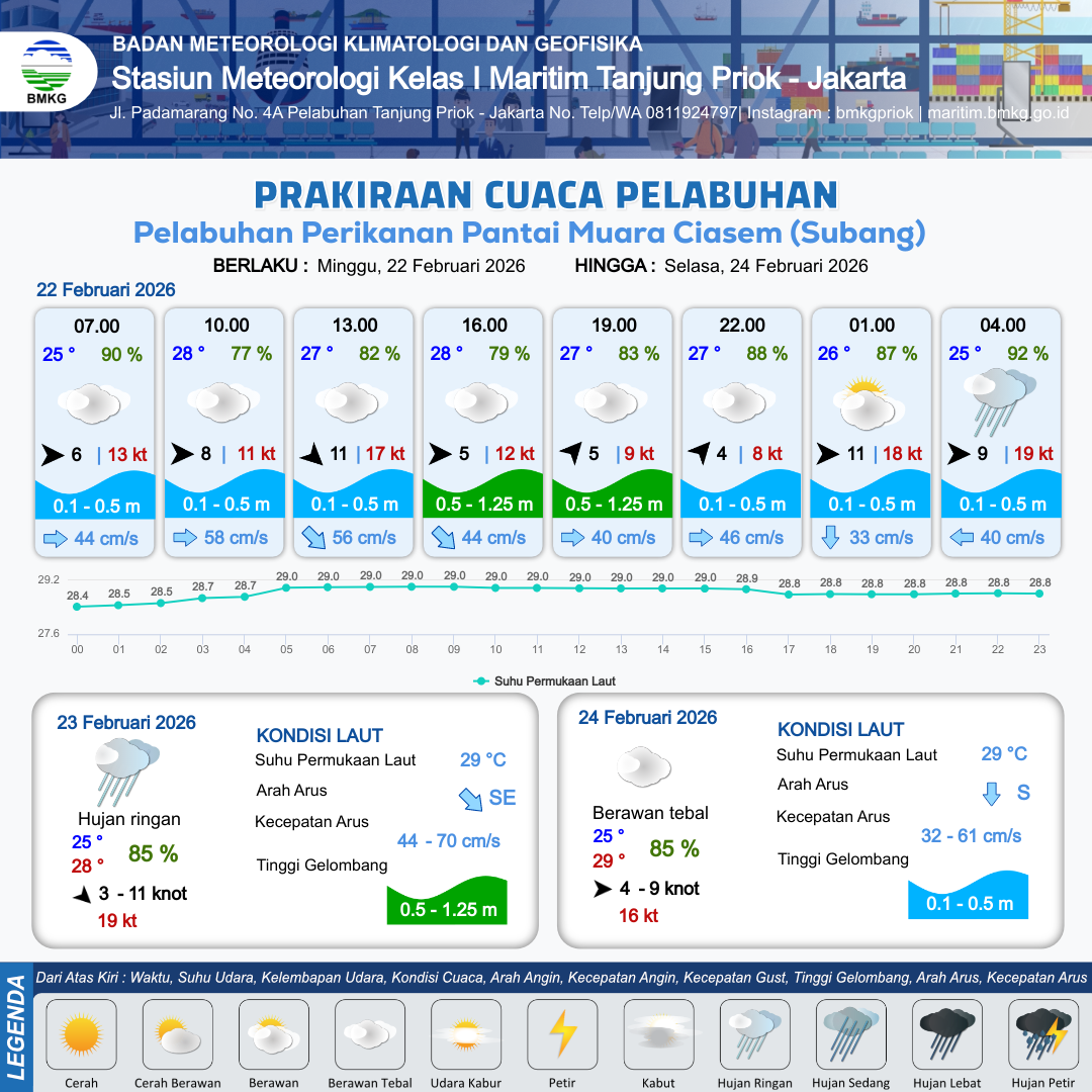 Prakiraan Cuaca Pelabuhan Pelabuhan Perikanan Pantai Muara Ciasem (Subang)
