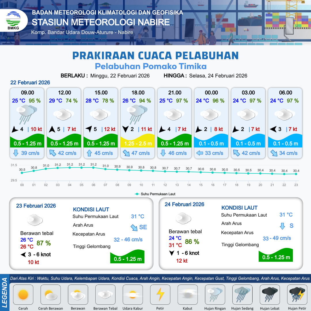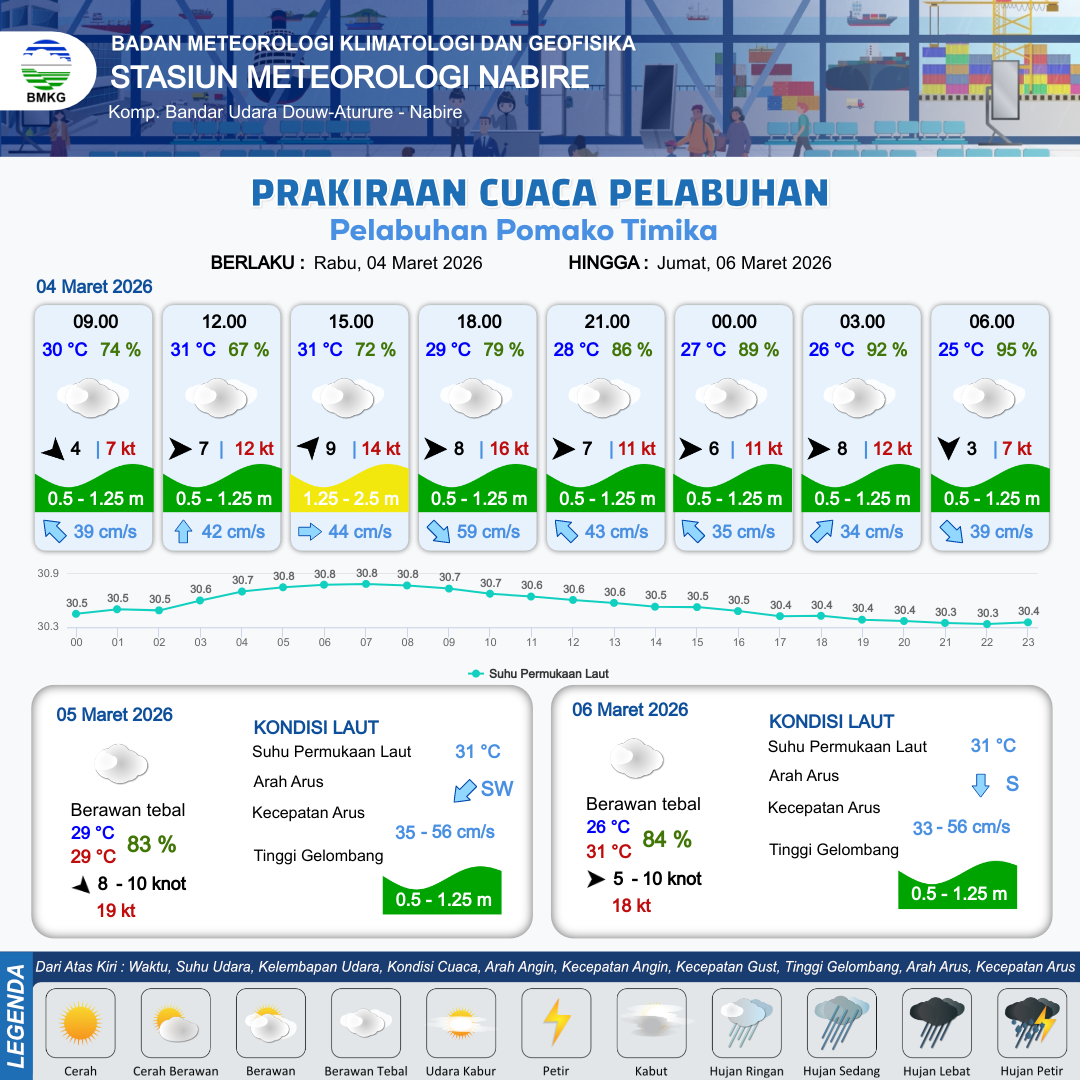 Prakiraan Cuaca Pelabuhan Pelabuhan Pomako Timika