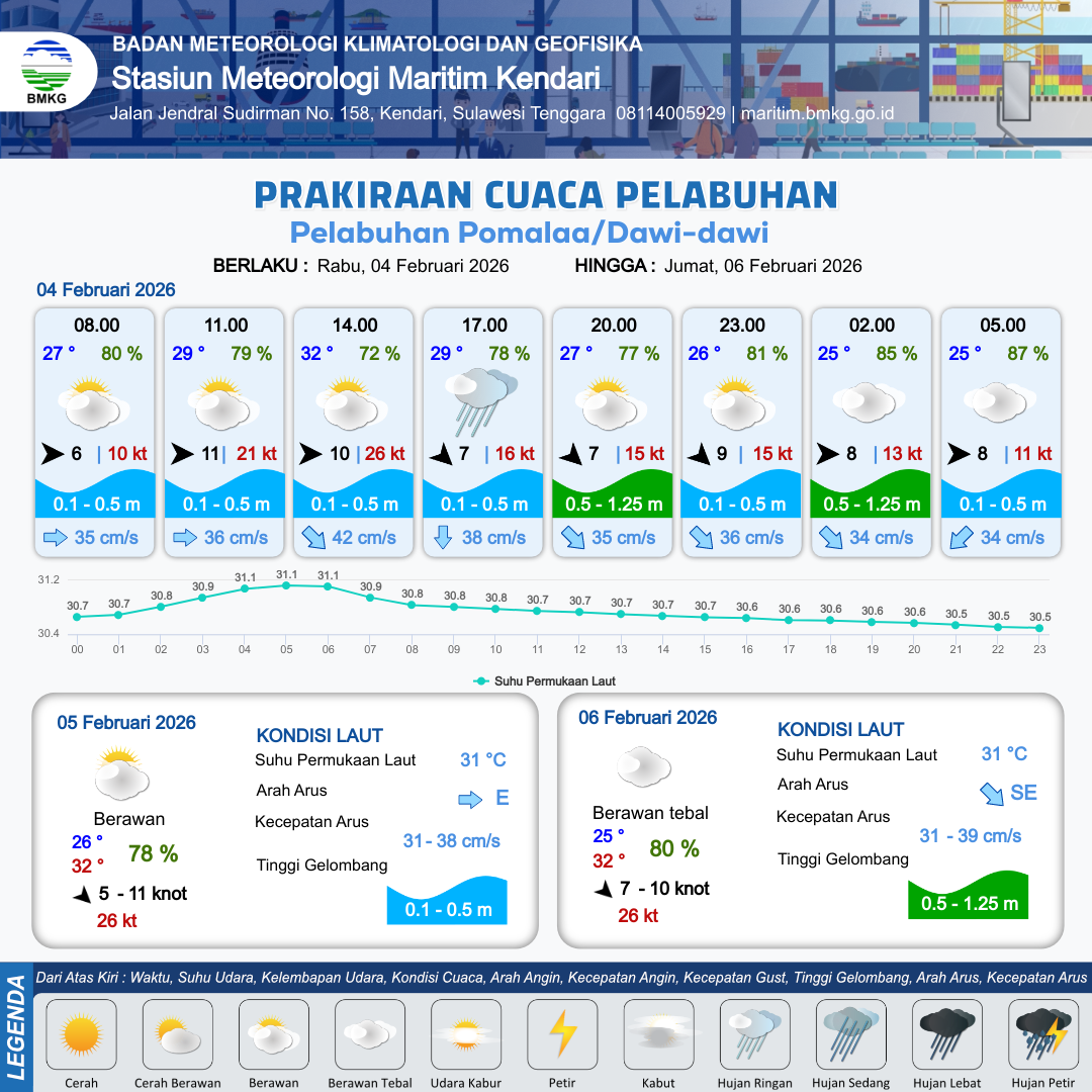 Prakiraan Cuaca Pelabuhan Pelabuhan Pomalaa/Dawi-dawi