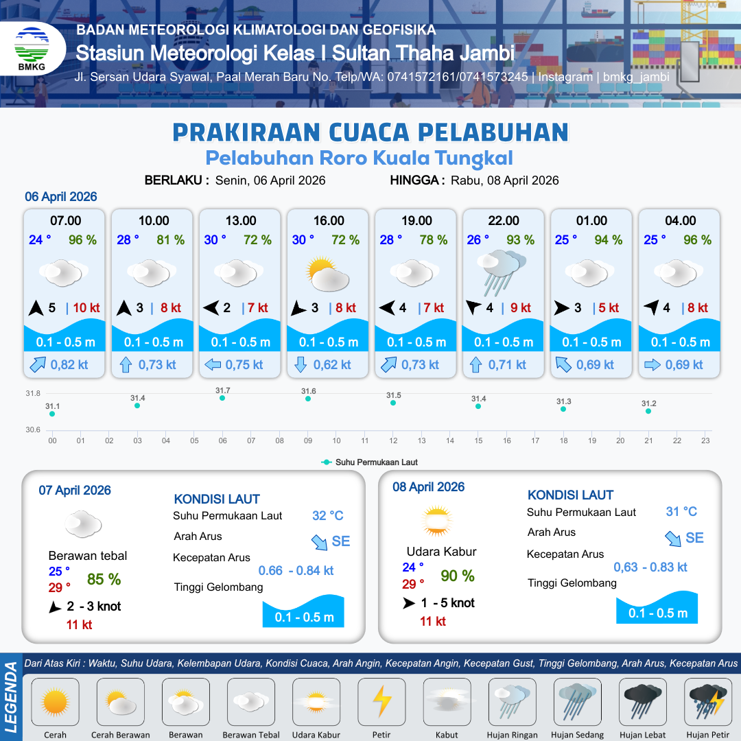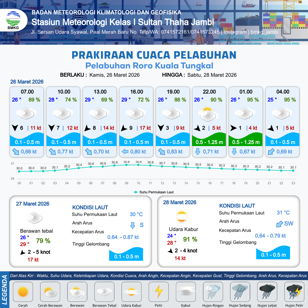 Prakiraan Cuaca Pelabuhan Pelabuhan Roro Kuala Tungkal