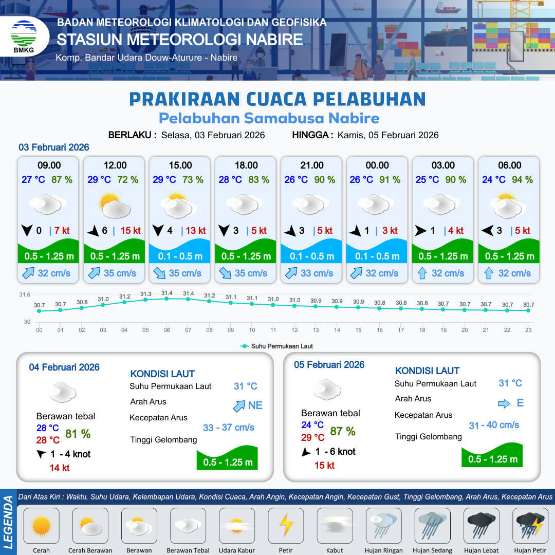Prakiraan Cuaca Pelabuhan Pelabuhan Samabusa Nabire