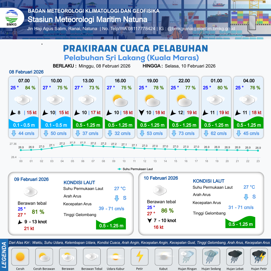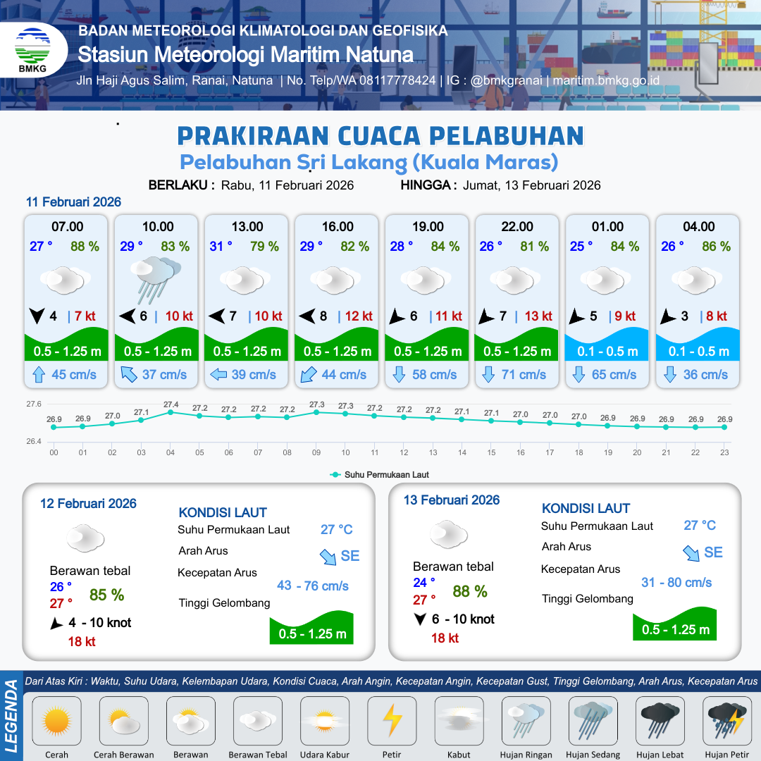 Prakiraan Cuaca Pelabuhan Pelabuhan Sri Lakang (Kuala Maras)