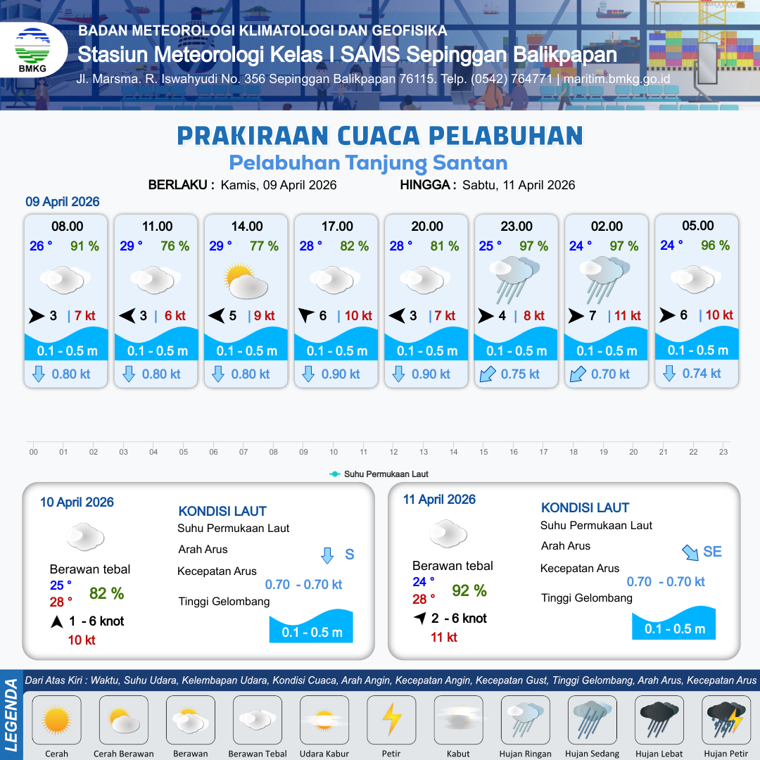 Prakiraan Cuaca Pelabuhan Pelabuhan Tanjung Santan