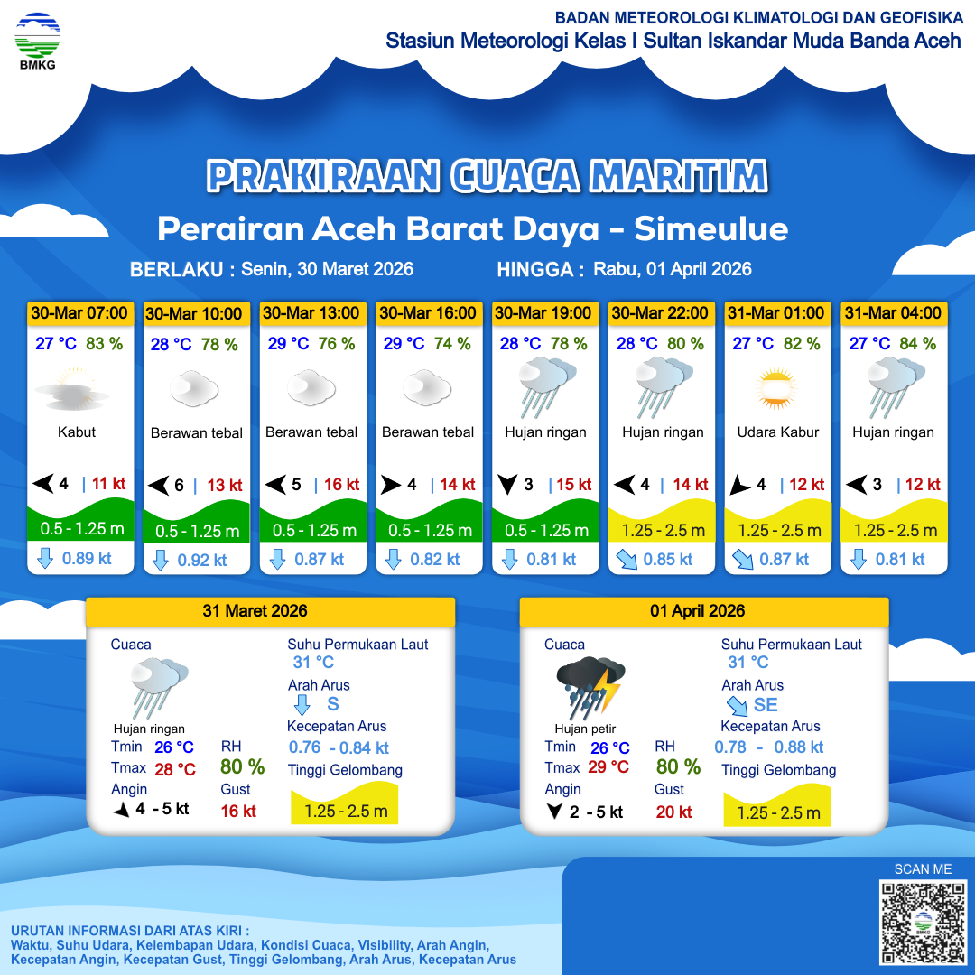 Prakiraan Cuaca Perairan Perairan Aceh Barat Daya - Simeulue