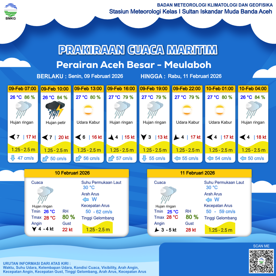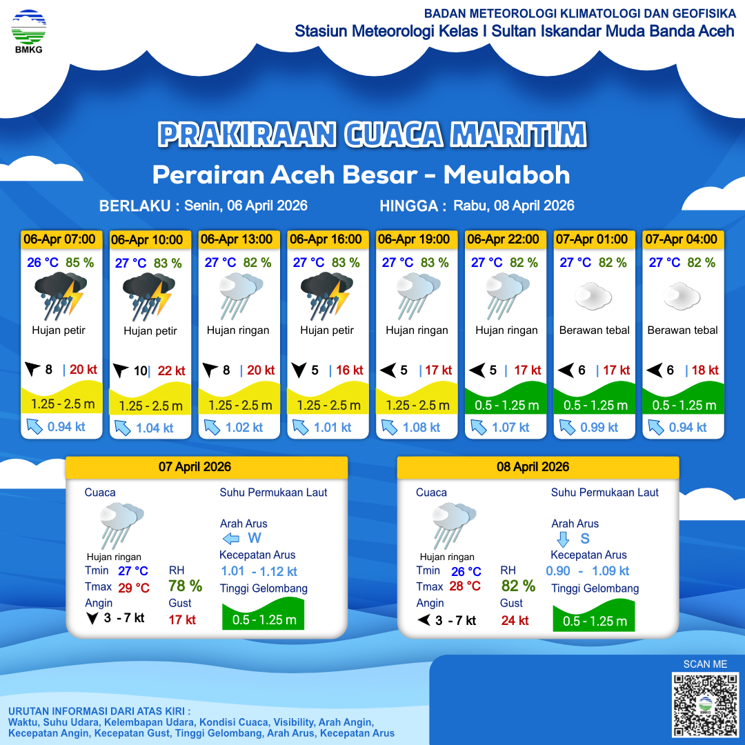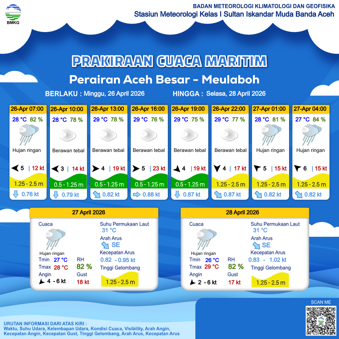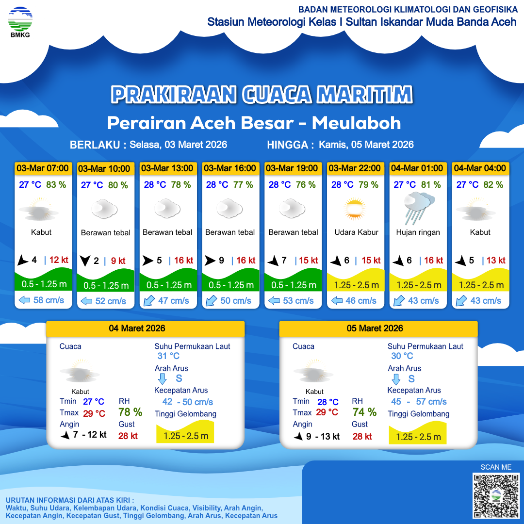 Prakiraan Cuaca Perairan Perairan Aceh Besar - Meulaboh