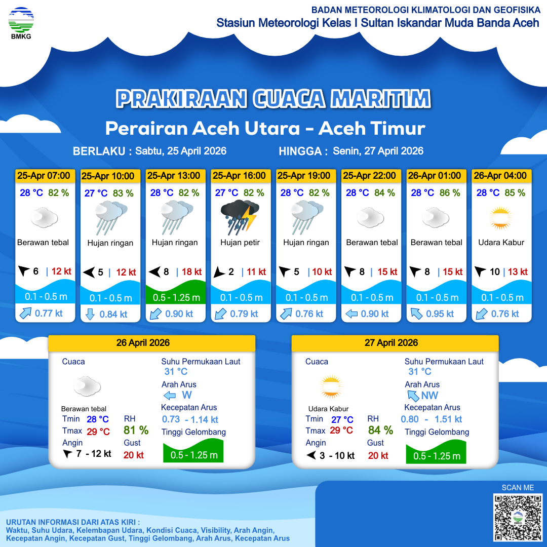 Prakiraan Cuaca Perairan Perairan Aceh Utara - Aceh Timur