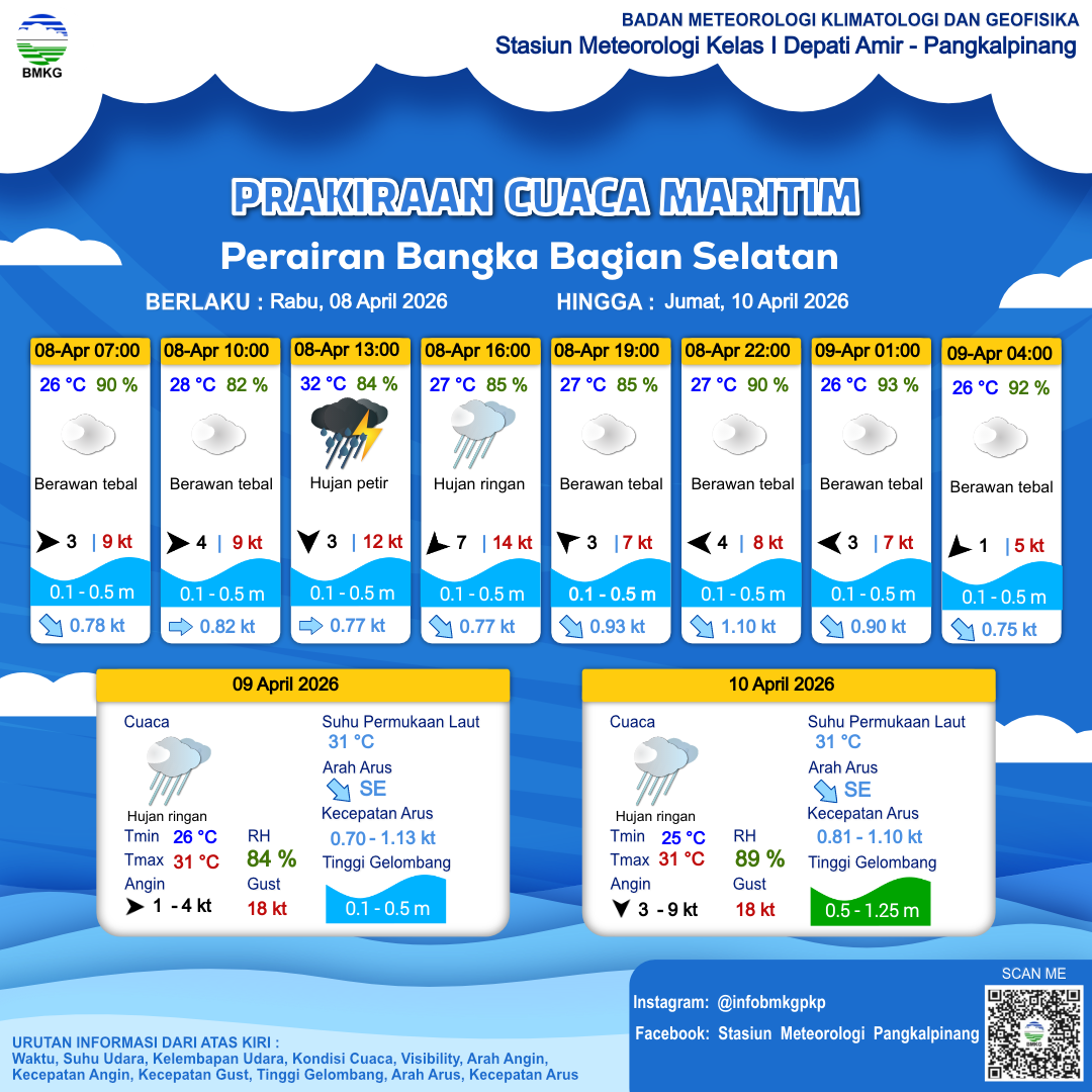 Prakiraan Cuaca Perairan Perairan Bangka Bagian Selatan