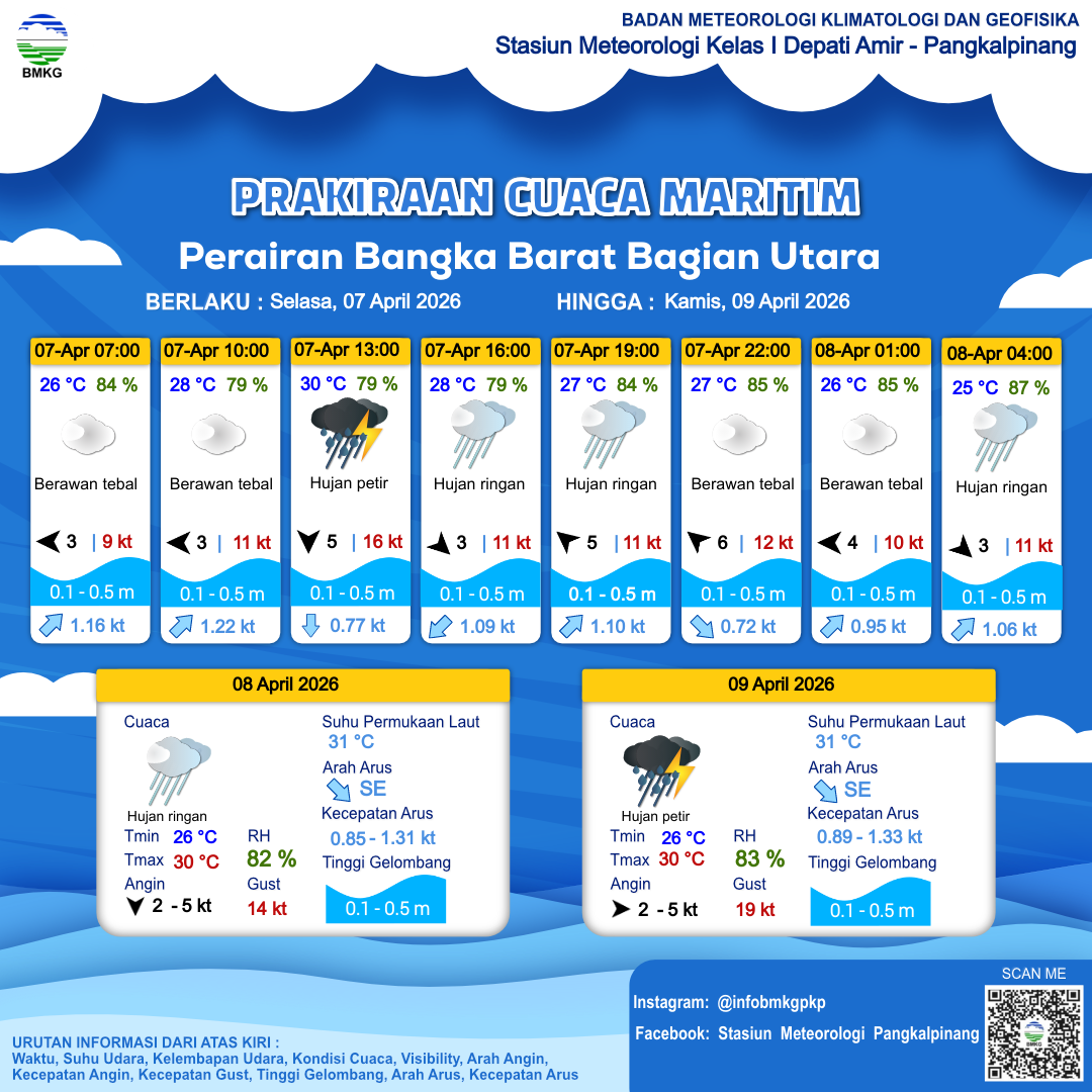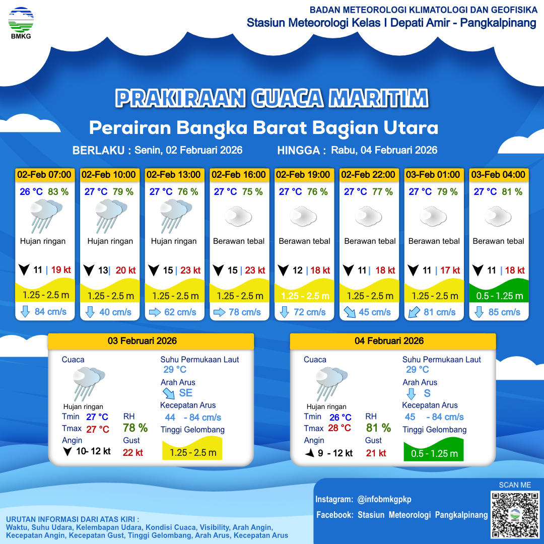 Prakiraan Cuaca Perairan Perairan Bangka Barat Bagian Utara