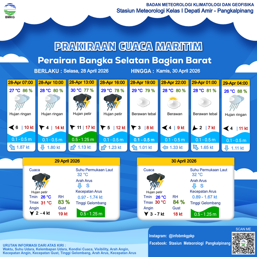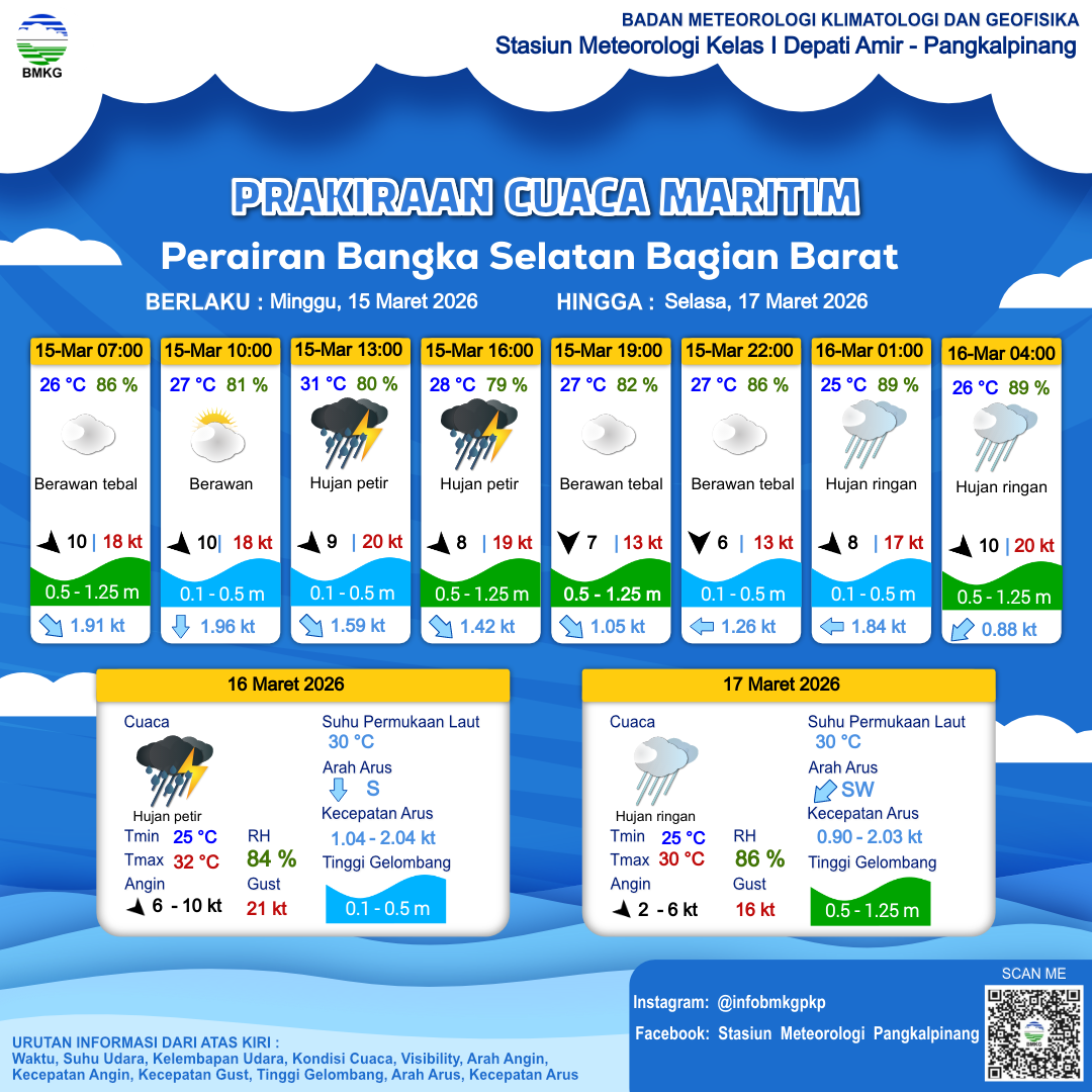 Prakiraan Cuaca Perairan Perairan Bangka Selatan Bagian Barat