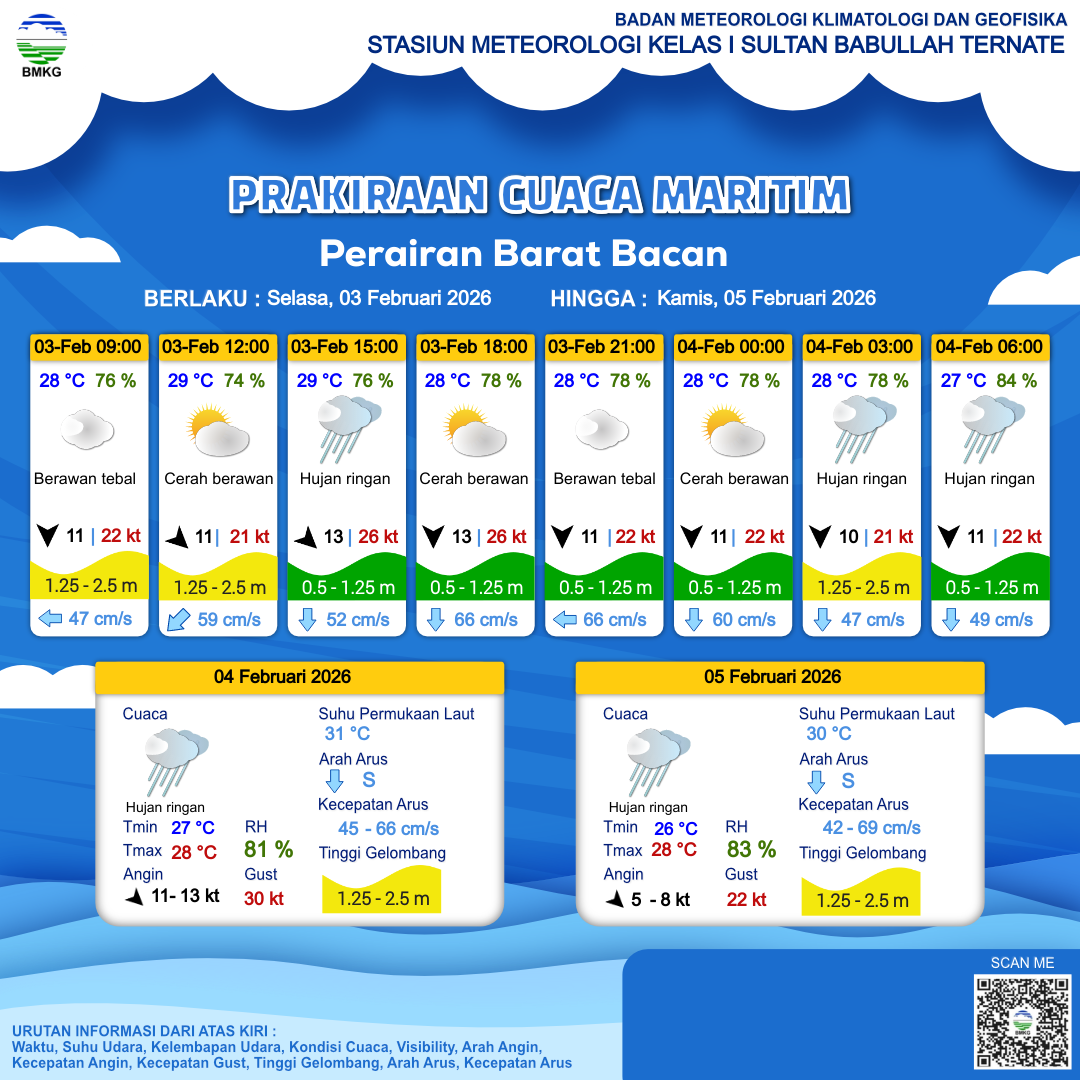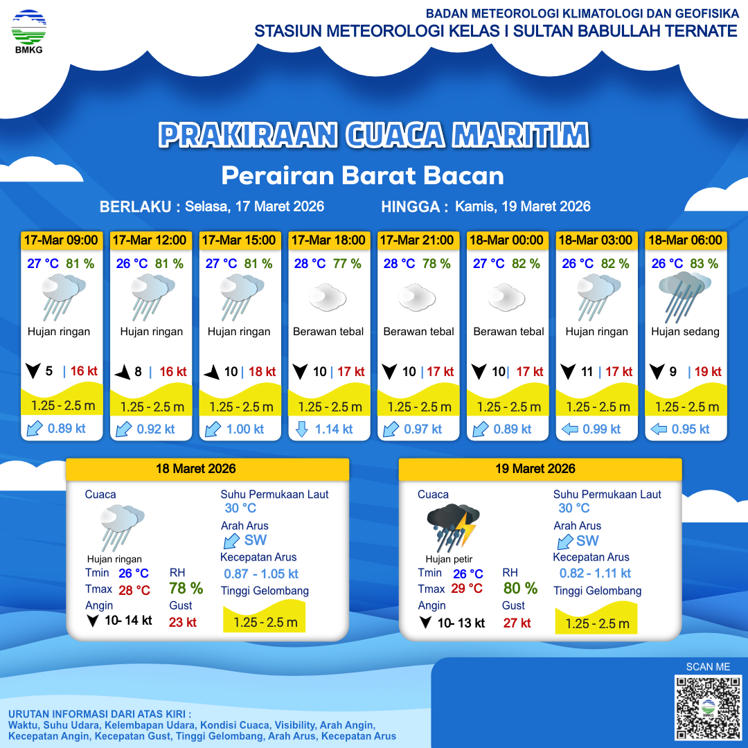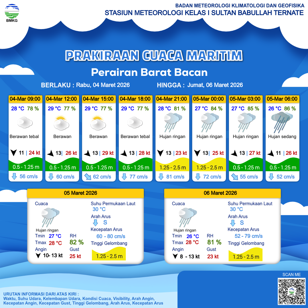 Prakiraan Cuaca Perairan Perairan Barat Bacan