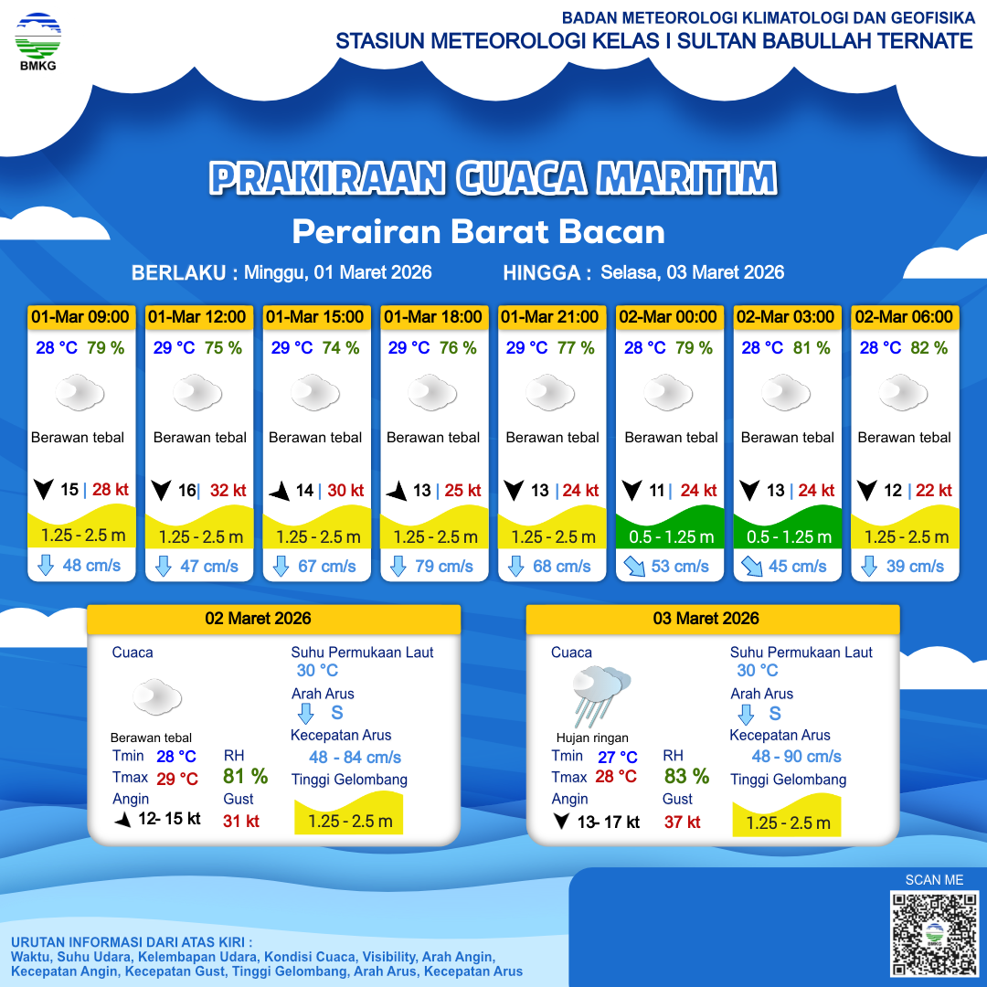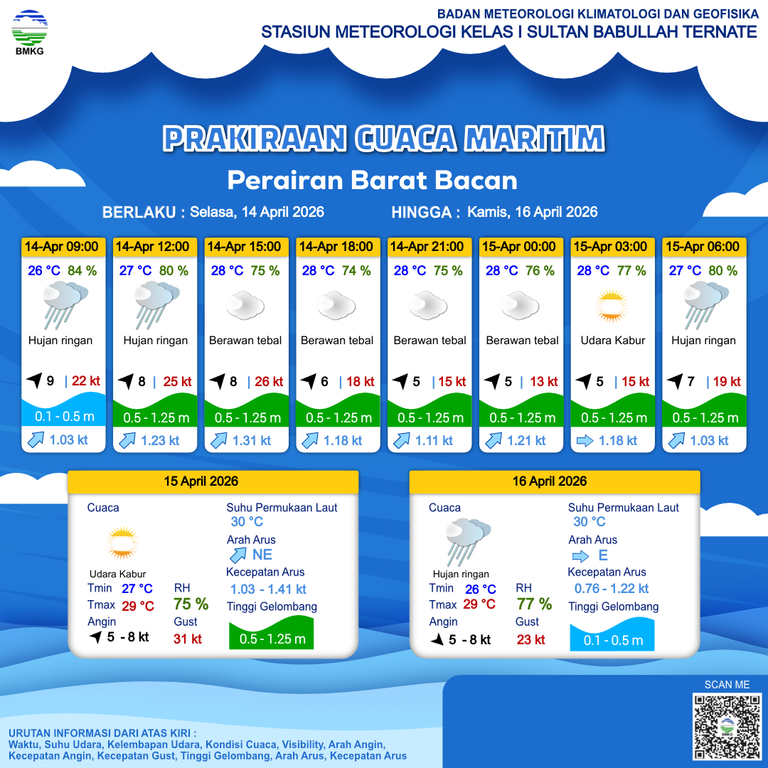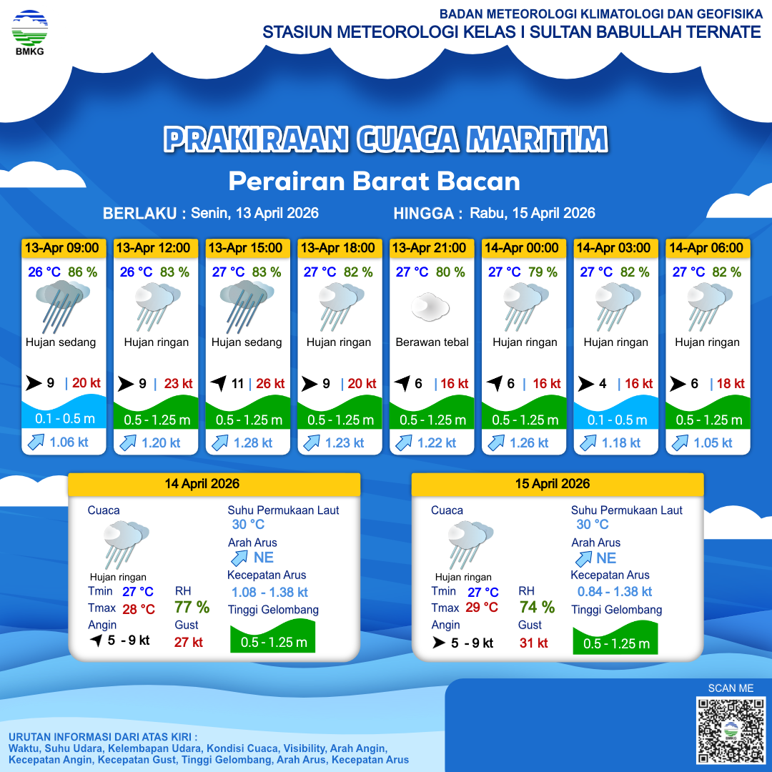 Prakiraan Cuaca Perairan Perairan Barat Bacan