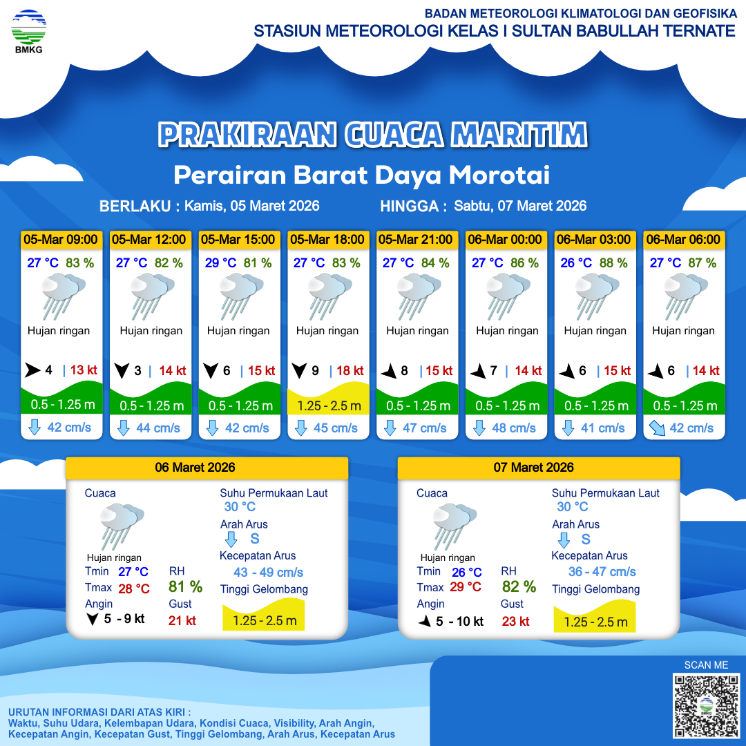Prakiraan Cuaca Perairan Perairan Barat Daya Morotai
