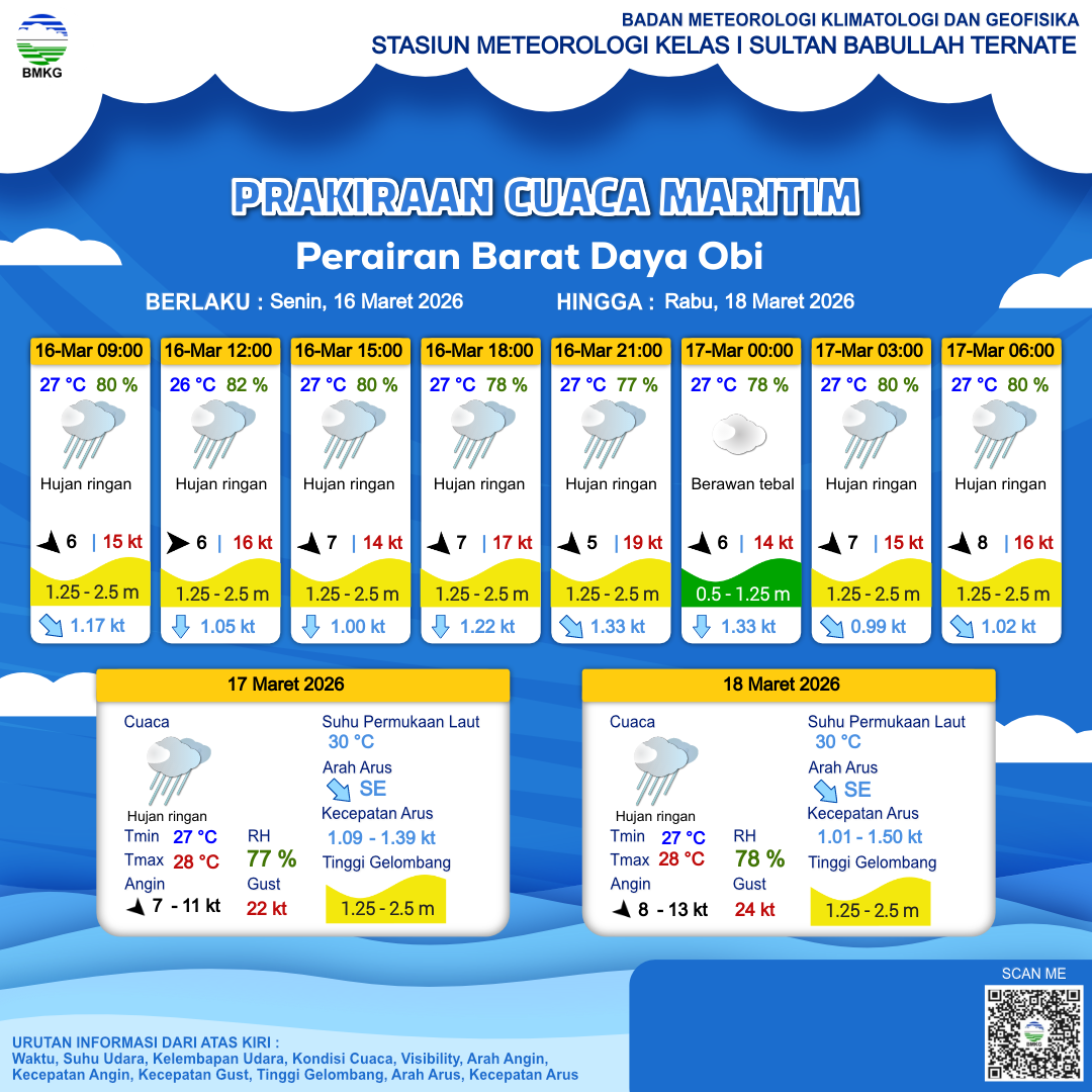 Prakiraan Cuaca Perairan Perairan Barat Daya Obi