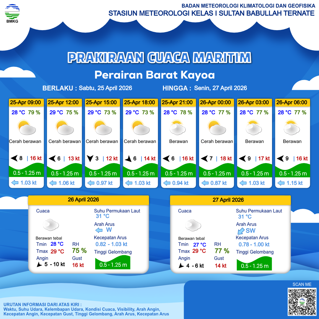 Prakiraan Cuaca Perairan Perairan Barat Kayoa