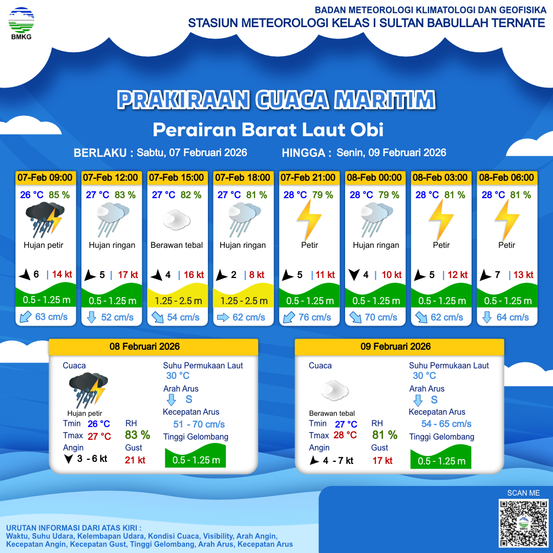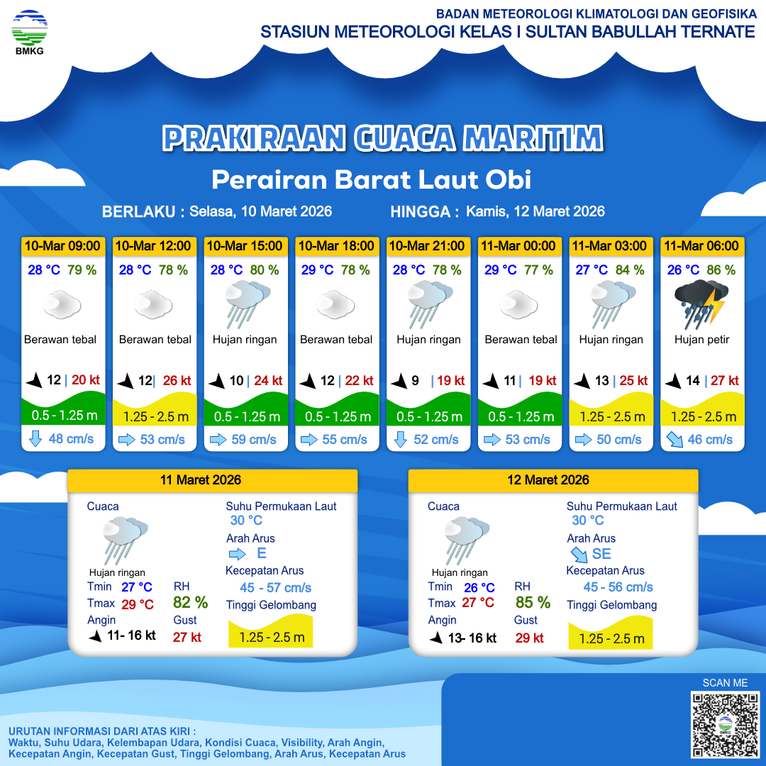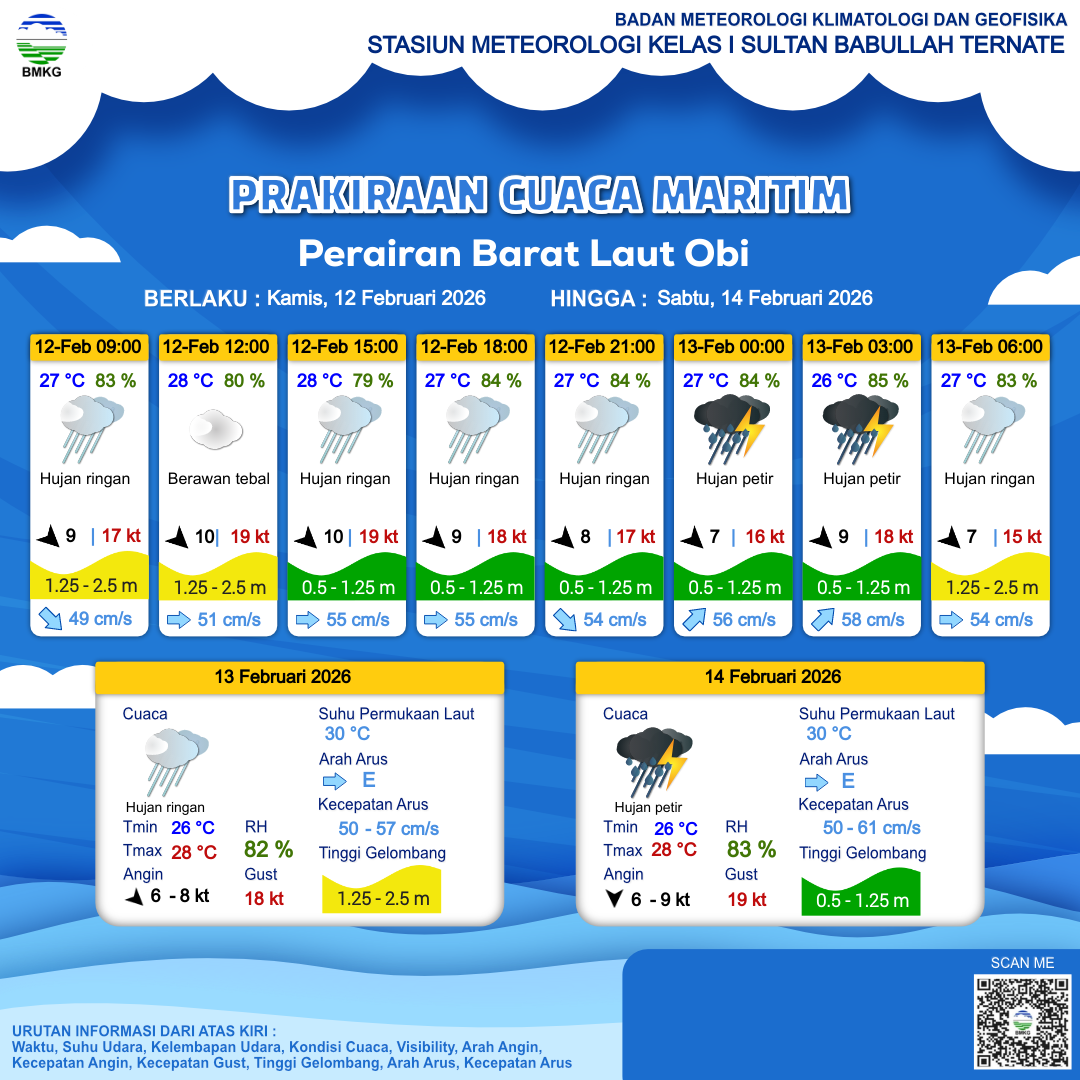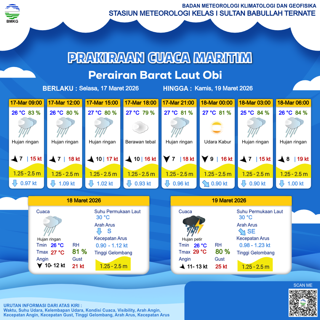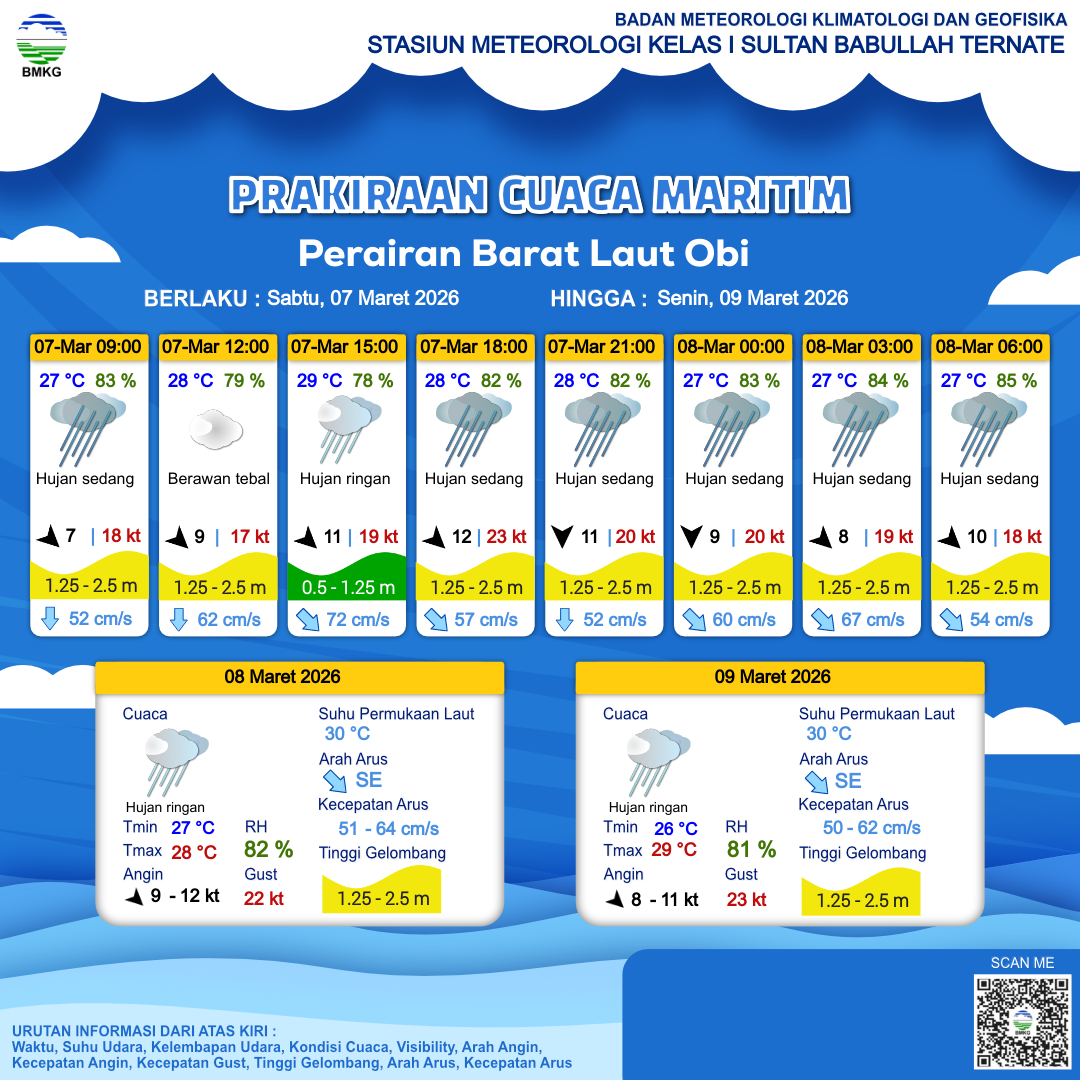 Prakiraan Cuaca Perairan Perairan Barat Laut Obi