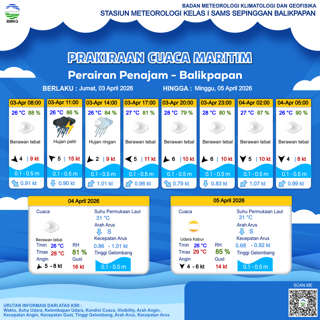 Prakiraan Cuaca Perairan Perairan Penajam - Balikpapan