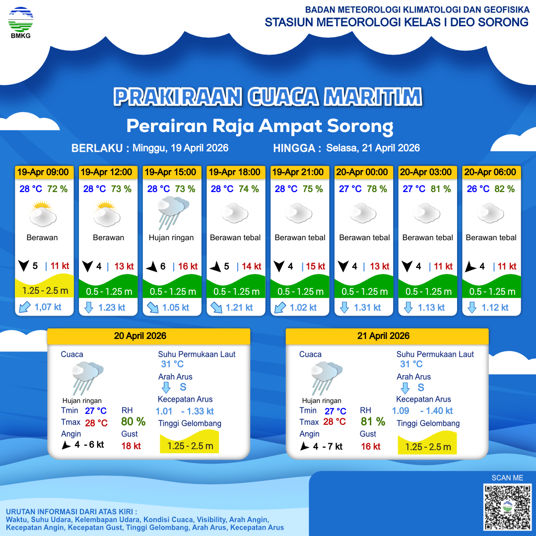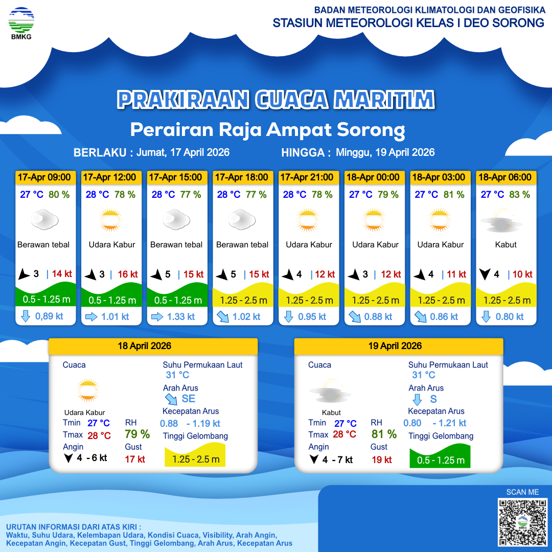 Prakiraan Cuaca Perairan Perairan Raja Ampat Sorong