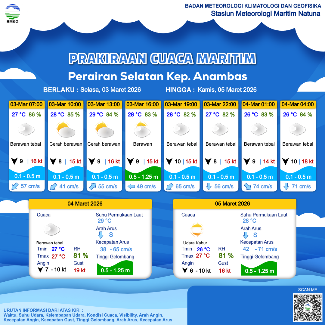 Prakiraan Cuaca Perairan Perairan Selatan Kep. Anambas
