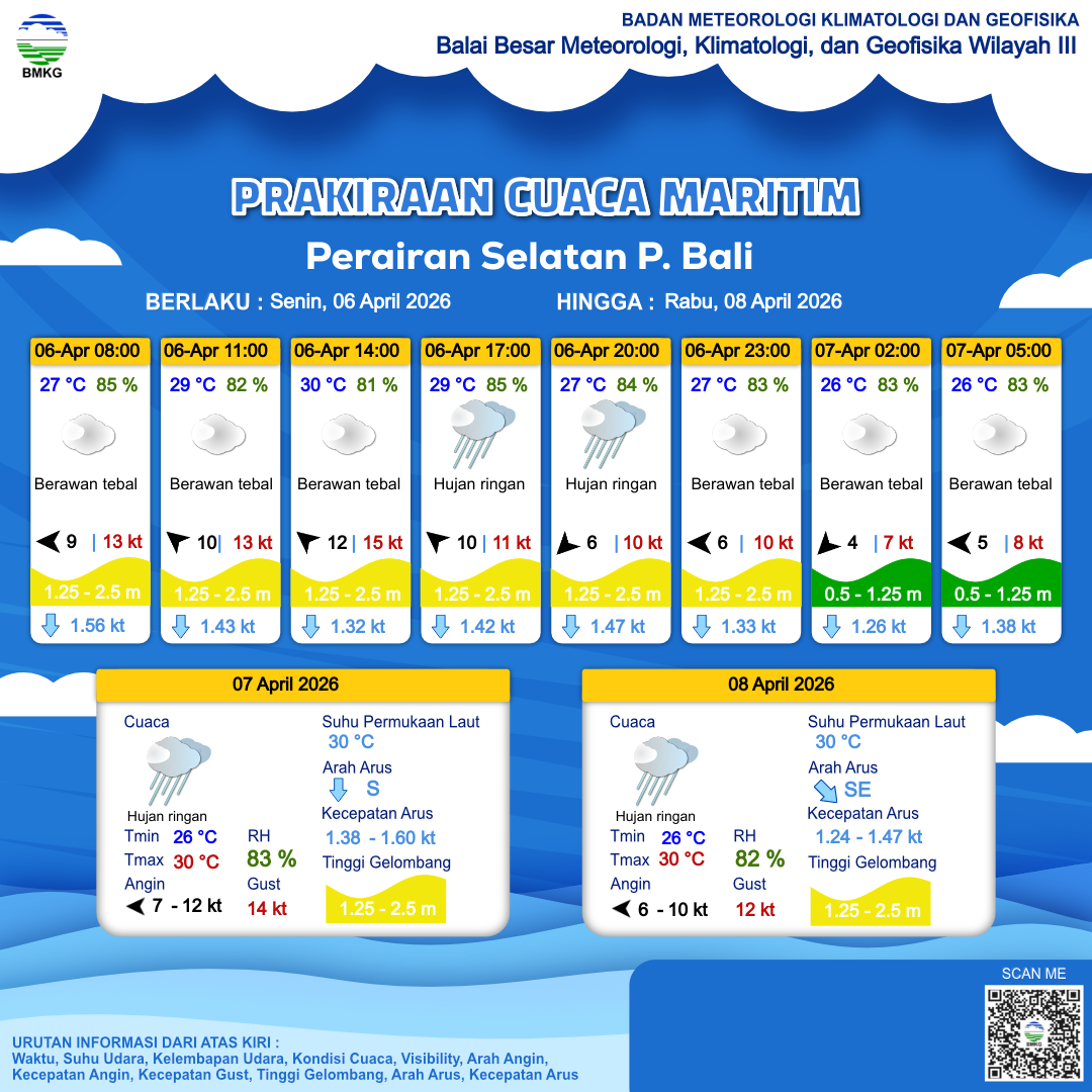 Prakiraan Cuaca Perairan Perairan Selatan P. Bali
