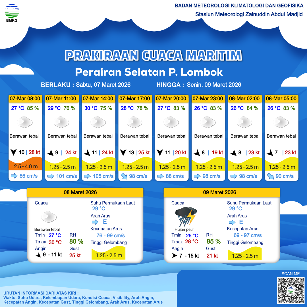 Prakiraan Cuaca Perairan Perairan Selatan P. Lombok