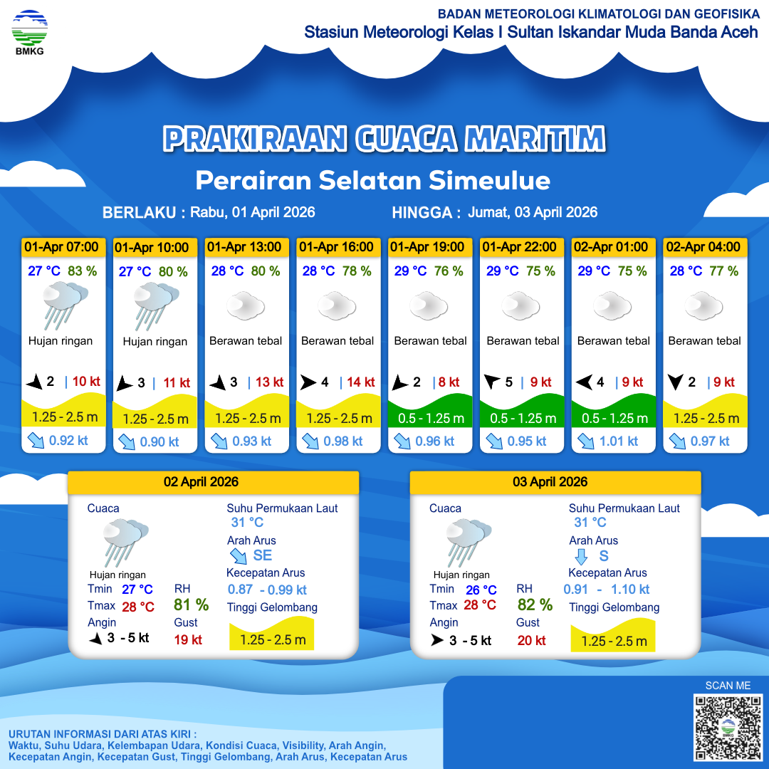 Prakiraan Cuaca Perairan Perairan Selatan Simeulue