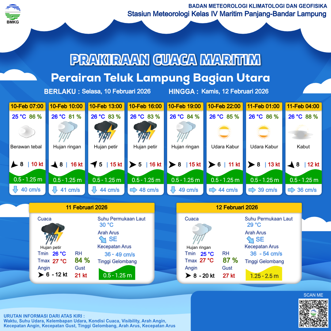 Prakiraan Cuaca Perairan Perairan Teluk Lampung Bagian Utara
