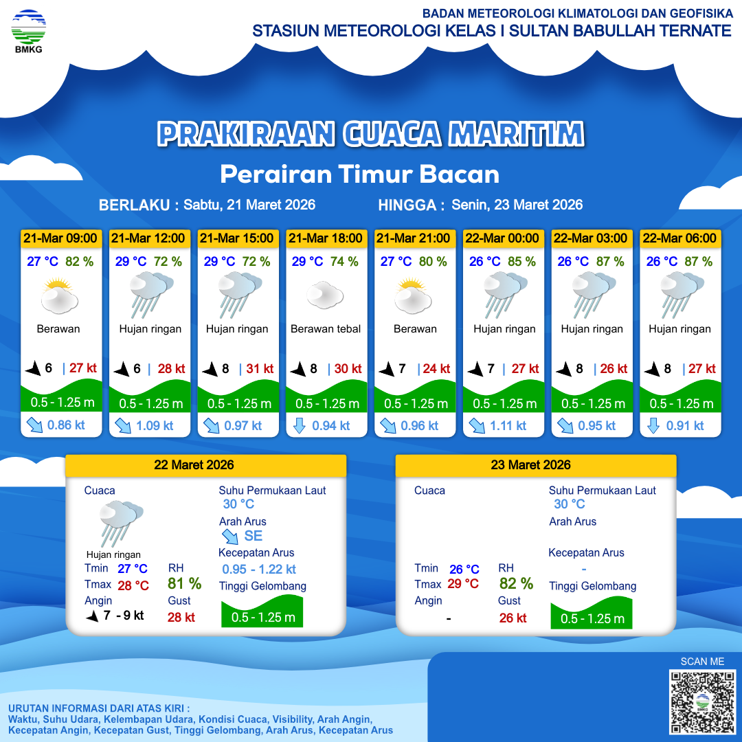 Prakiraan Cuaca Perairan Perairan Timur Bacan