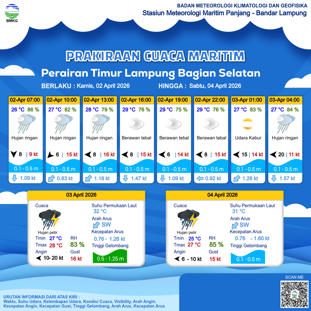 Prakiraan Cuaca Perairan Perairan Timur Lampung Bagian Selatan