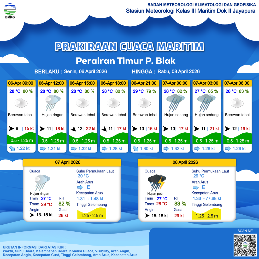 Prakiraan Cuaca Perairan Perairan Timur P. Biak