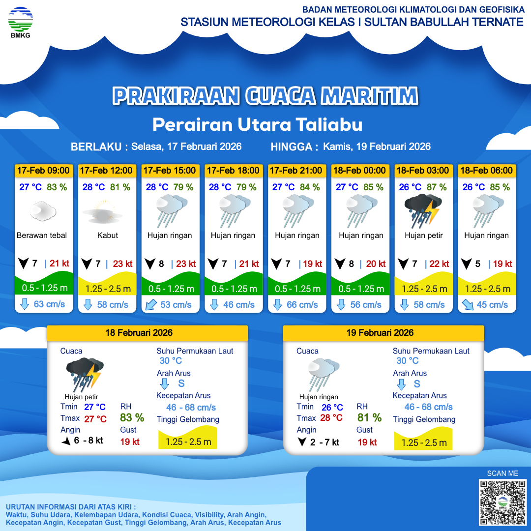 Prakiraan Cuaca Perairan Perairan Utara Taliabu