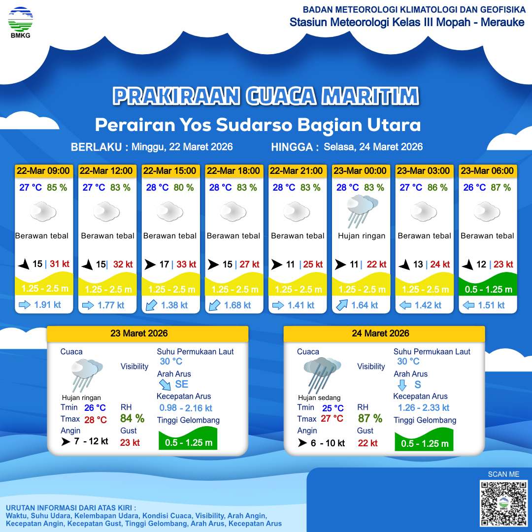 Prakiraan Cuaca Perairan Perairan Yos Sudarso Bagian Utara