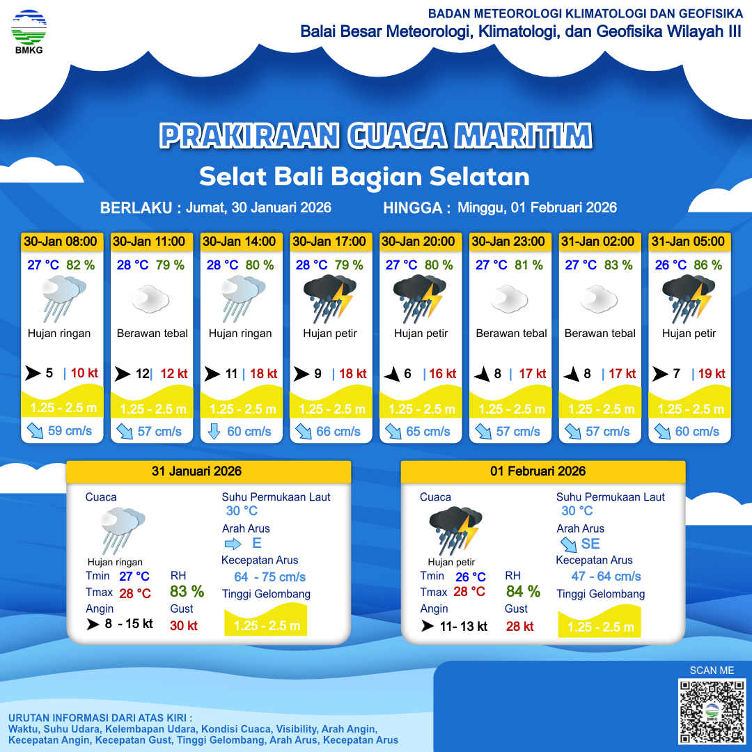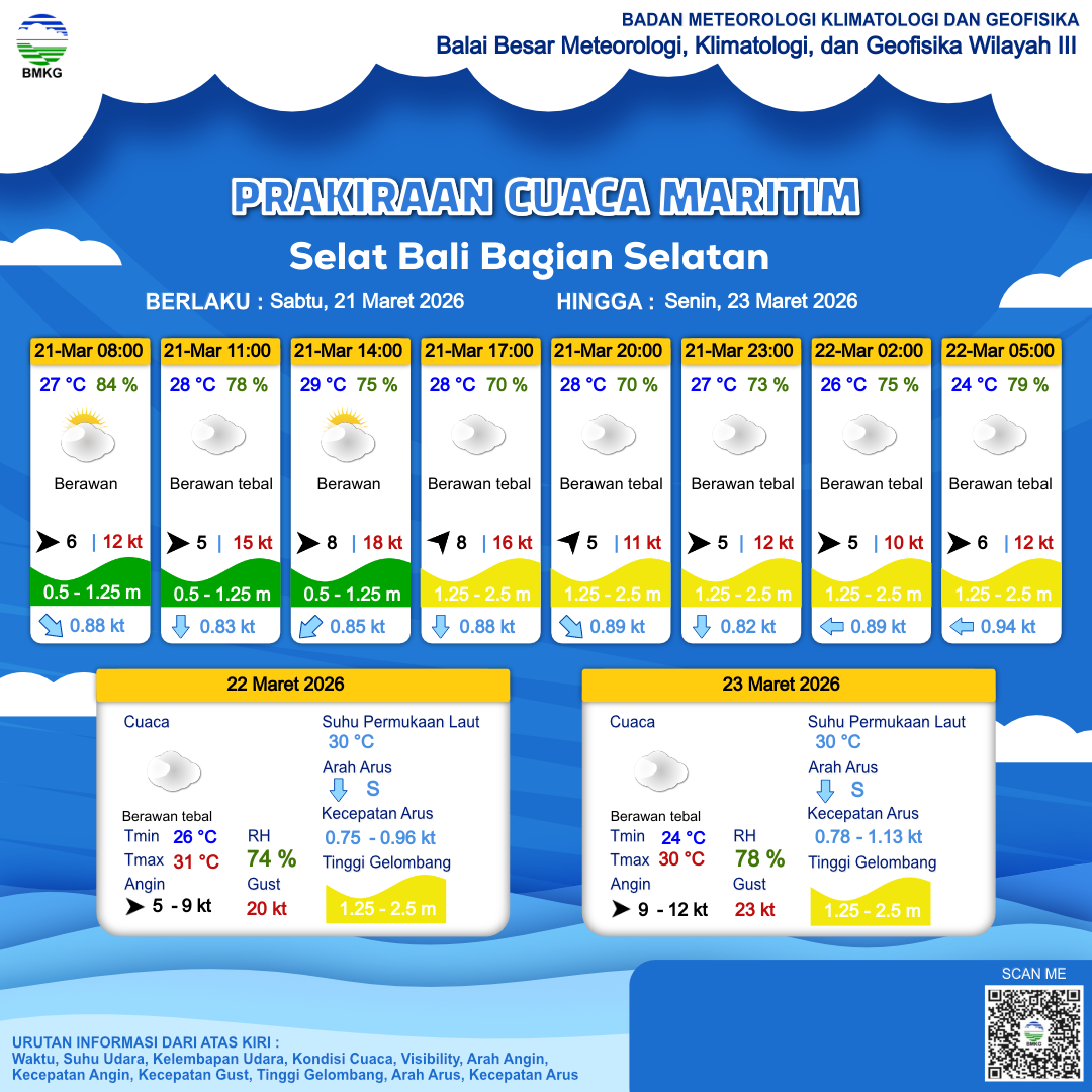 Prakiraan Cuaca Perairan Selat Bali Bagian Selatan