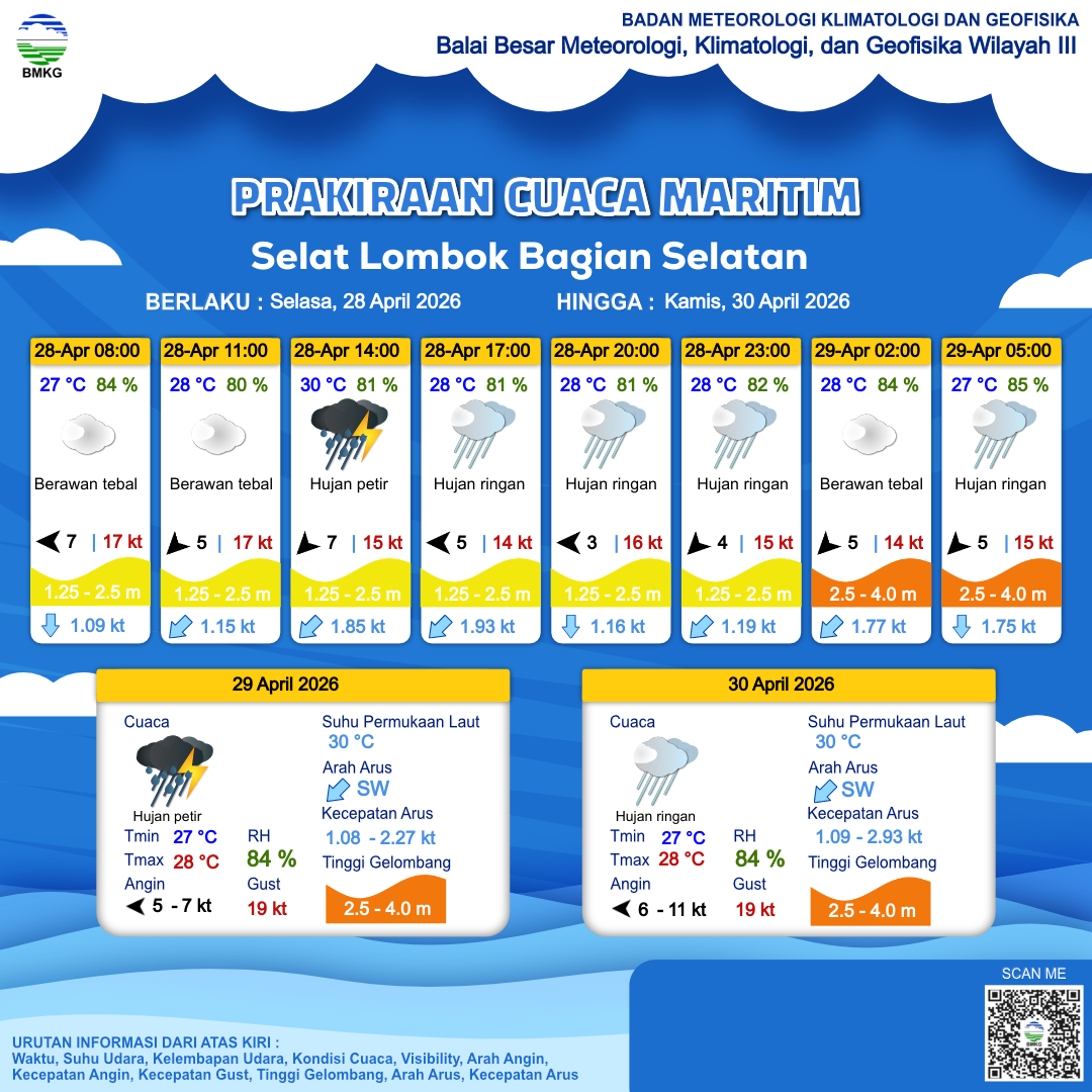 Prakiraan Cuaca Perairan Selat Lombok Bagian Selatan